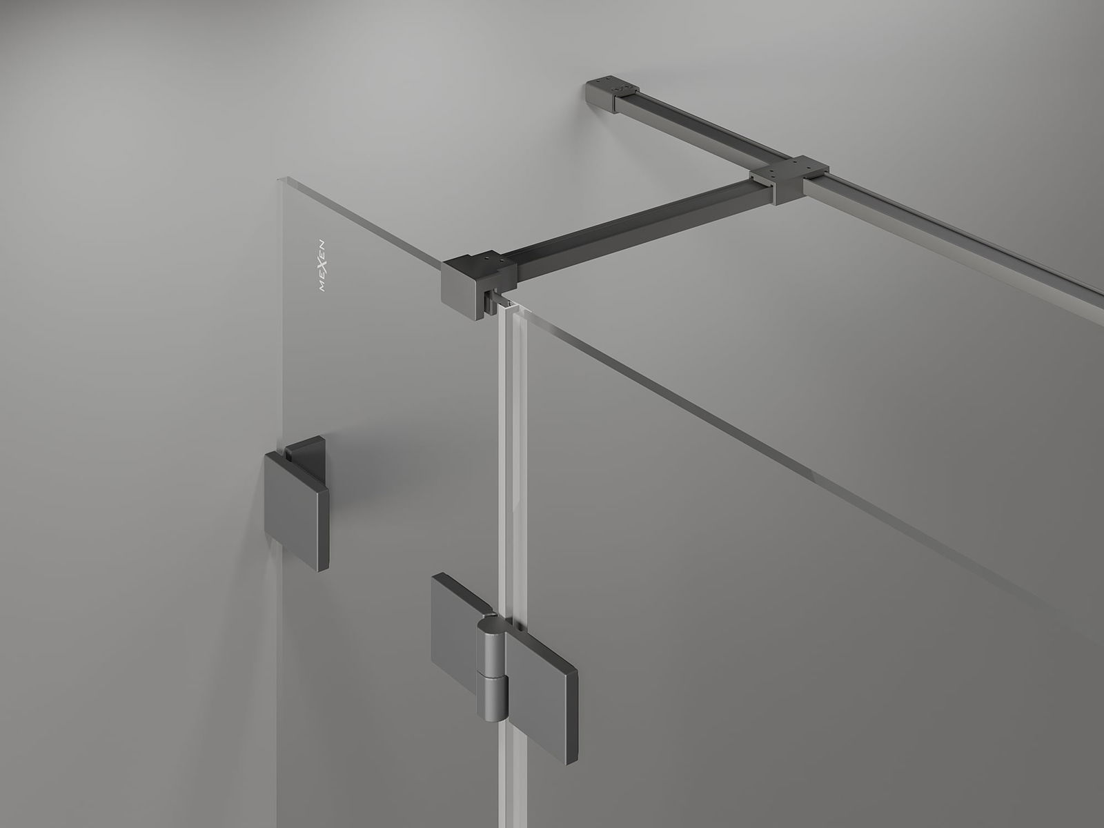 Handige en comfortabele greep is gemaakt van duurzaam en weerbestendig metaal. De modieuze vorm in combinatie met een afwerking die past bij de kleur van de profielen geeft het geheel een moderne en stijlvolle uitstraling, wat de esthetiek van elke badkamer benadrukt.