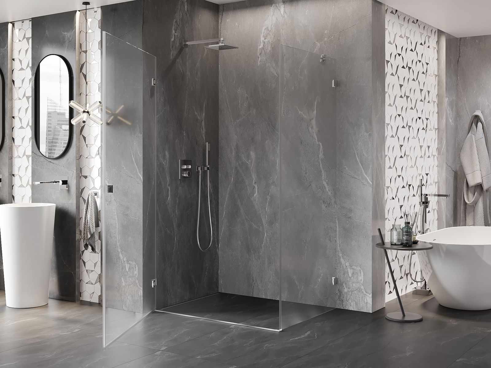 Draaideuren bieden maximale vrijheid tijdens het gebruik. Ze hebben stevige scharnieren gemaakt van duurzaam materiaal, die gemakkelijk schoon te houden zijn en gemakkelijke toegang tot het interieur van de cabine bieden.