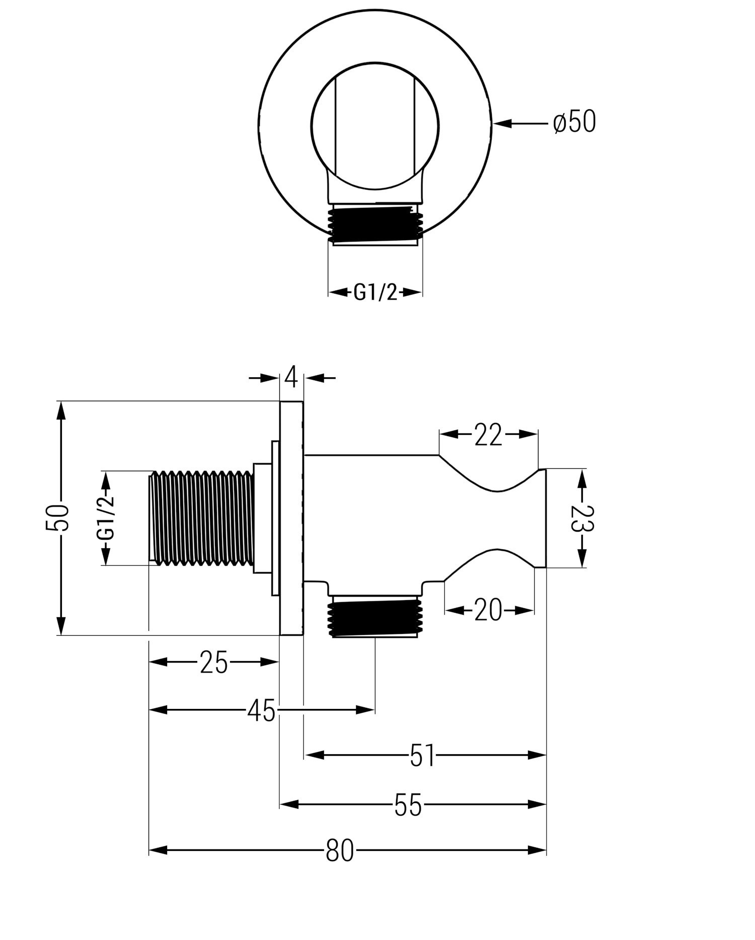 De aansluiting met 1/2" schroefdraad is een algemeen gebruikte standaardcomponent in interne waterinstallaties. Hierdoor is het aansluiten en monteren van de volgende douche-elementen veel eenvoudiger en intuïtiever.