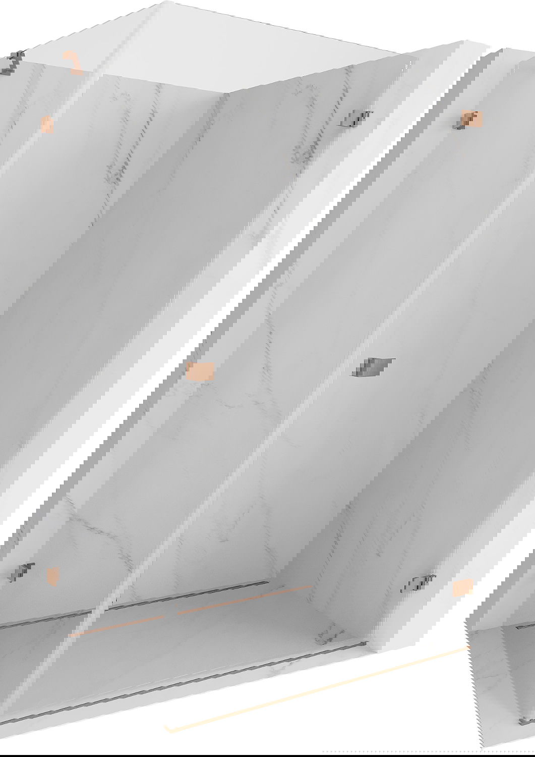 De klemmen zijn gemaakt van zeer duurzaam messing en creëren een vlak glazen oppervlak. Het is een uitstekende keuze die elegantie, duurzaamheid en modern design combineert. Dankzij dergelijke oplossingen wint de douche aan esthetiek en tegelijkertijd vergemakkelijken ze het onderhoud van de netheid.