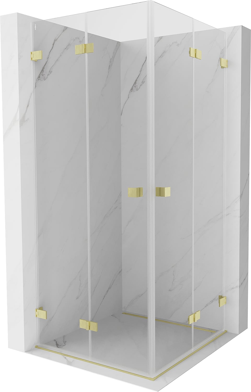 Mexen Lunar-F Duo vouwdeur douchecabine 75 x 75 cm, transparant, geborsteld goud - 836-075L-075P-55-00