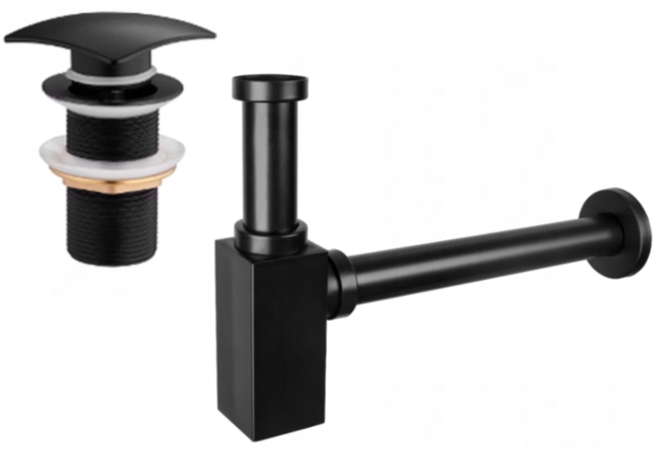 Mexen halfsifon wastafel vierkant met klik-klak stop, zonder overloop, zwart - 7991660-70