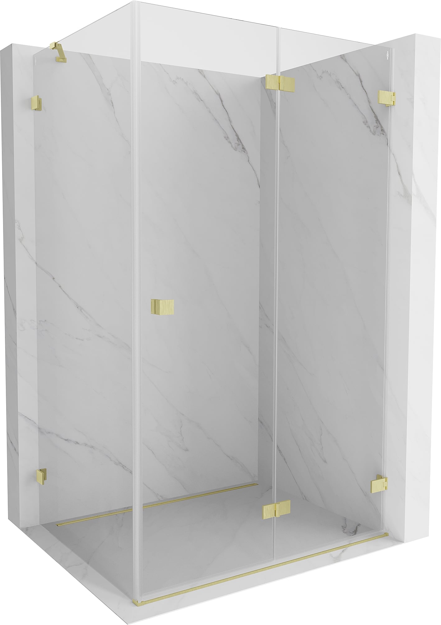 Mexen Lunar-F inklapbare douchecabine rechts 90 x 70 cm, transparant, geborsteld goud - 836-090-070-55-00-P