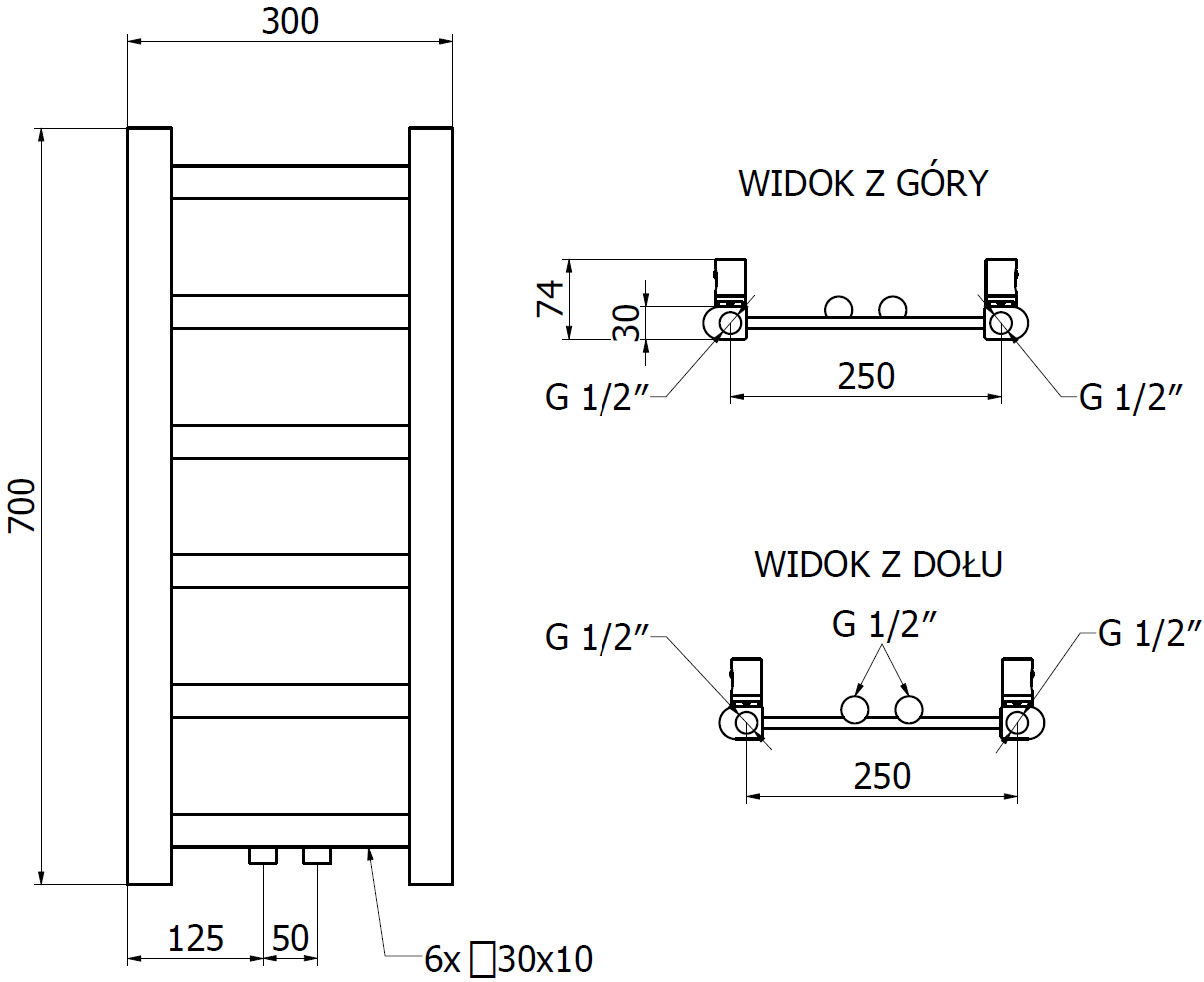 - 4xG ½″ boven en onder aan de rechter- of linkerkant