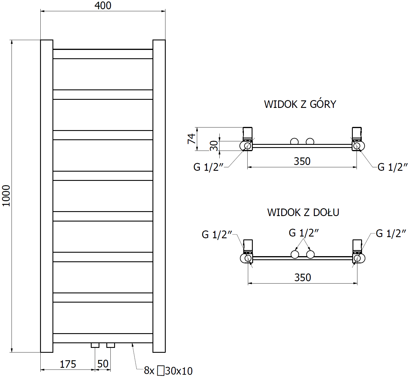 - 4xG ½″ bovenaan en onderaan rechts of links