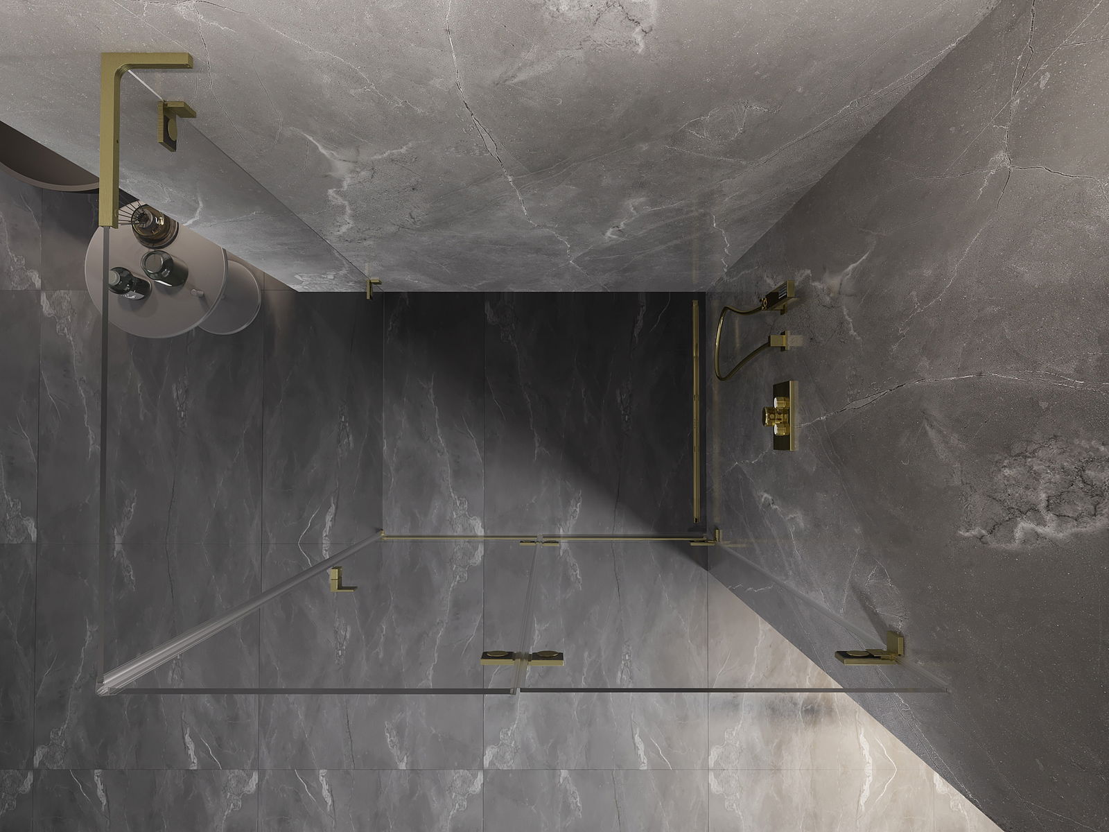 Mexen Lunar-F L inklapbare douchecabine rechts 95 x 70 cm, transparant, geborsteld goud - 836L-095-070-55-00-P