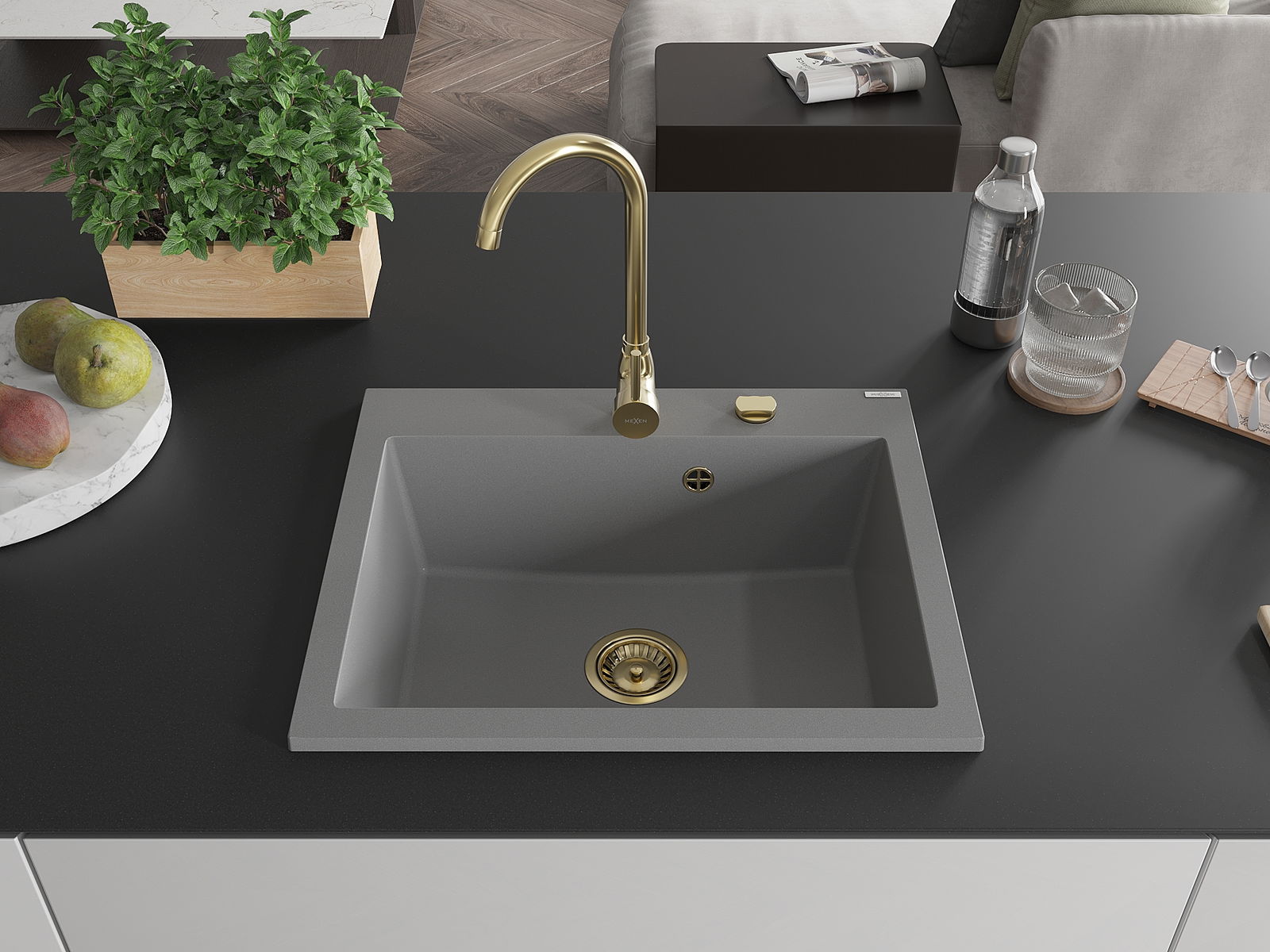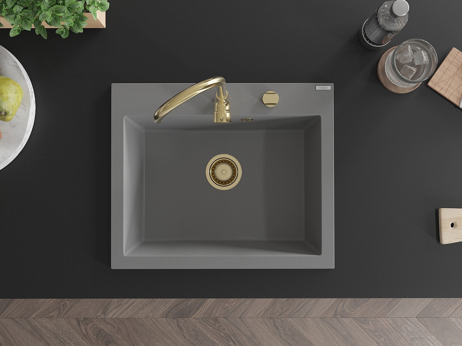 De gootsteen is gemaakt van hoogwaardig graniet. Het vormt een elegante en vooral praktische aanvulling op elke keuken, ongeacht de stijl ervan. De hoge kwaliteit en duurzaamheid van graniet garanderen jarenlang gebruik.