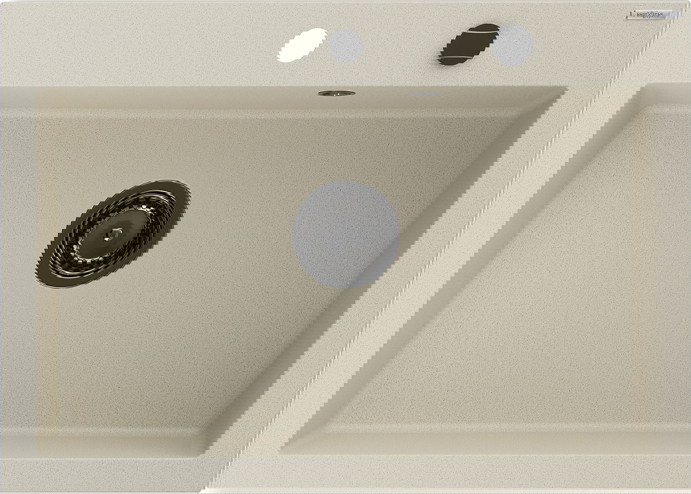 De spoelbak heeft een voorgesneden gat met een diameter van 35 mm voor eenvoudige verwijdering. Dit gat kan bijvoorbeeld worden gebruikt om een vloeistofdispenser te installeren, waardoor plastic flessen in de keuken overbodig zijn en een elegante afwerking ontstaat.