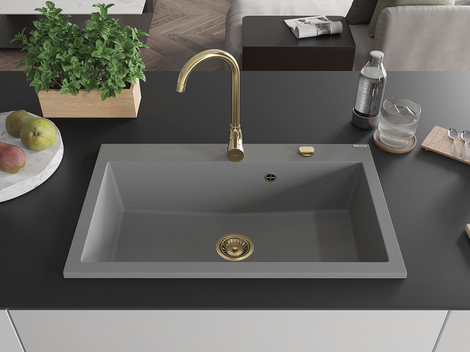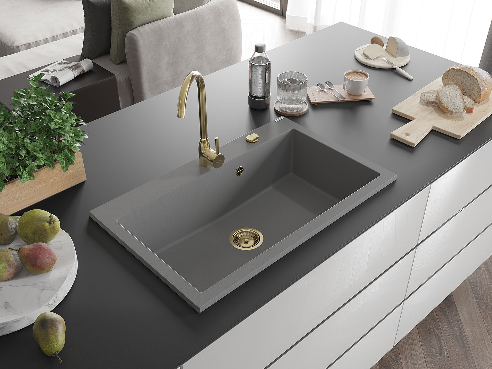 De gootsteen is gemaakt van hoogwaardig graniet. Het vormt een elegante en vooral praktische aanvulling op elke keuken, ongeacht de stijl ervan. De hoge kwaliteit en duurzaamheid van graniet garanderen jarenlang gebruik.
