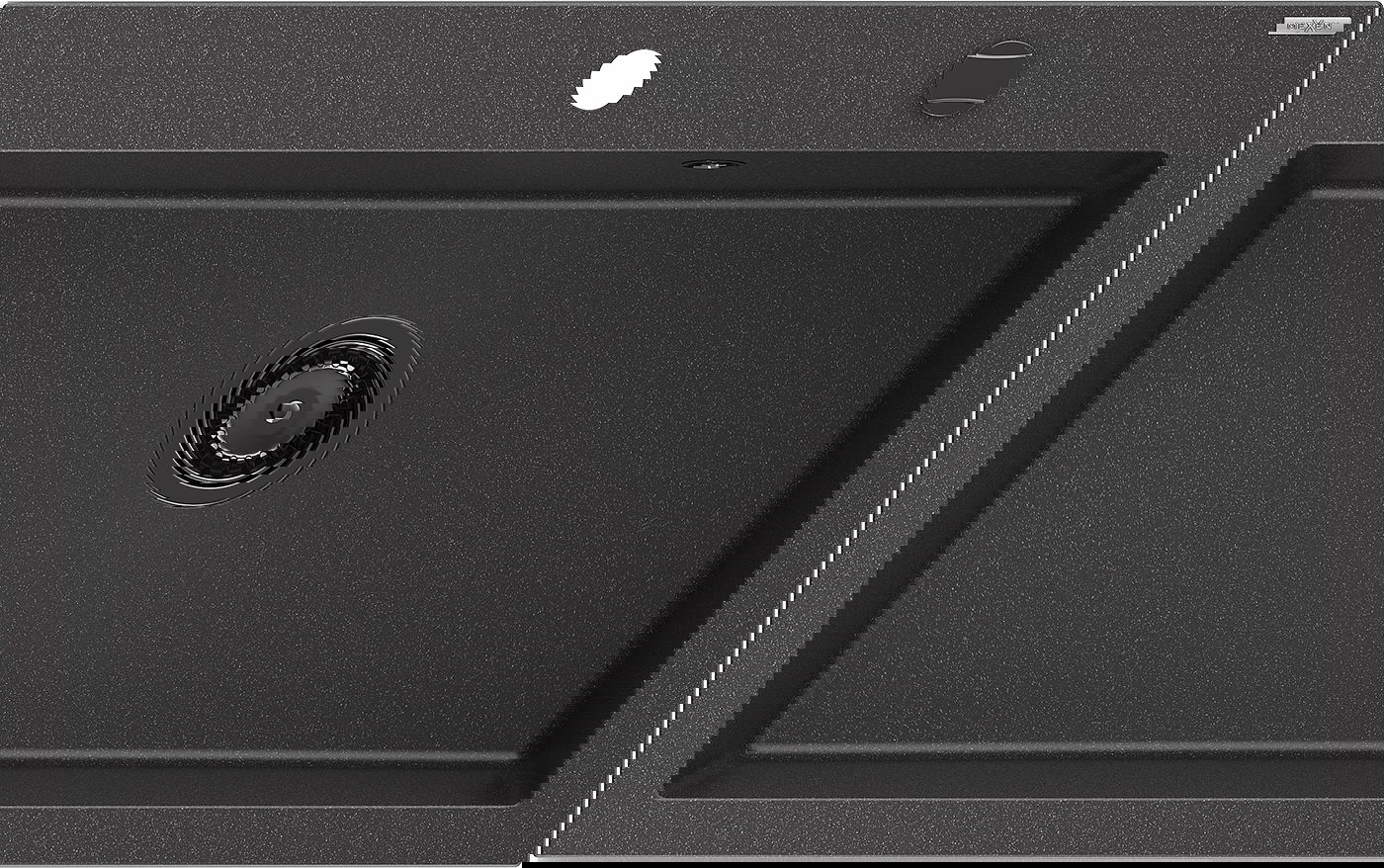 De spoelbak heeft een voorgesneden gat met een diameter van 35 mm voor eenvoudige verwijdering. Dit gat kan bijvoorbeeld worden gebruikt om een vloeistofdispenser te installeren, waardoor plastic flessen in de keuken overbodig zijn en een elegante afwerking ontstaat.