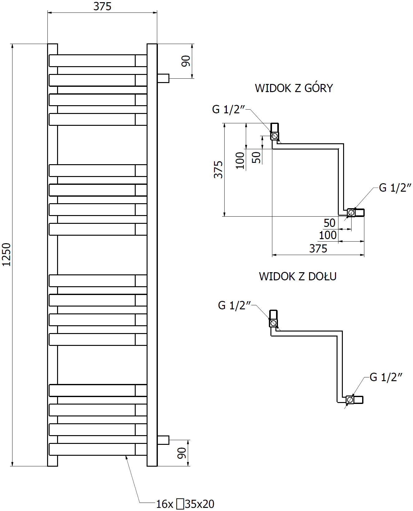 - 4xG ½″ boven en onder aan de rechter- of linkerzijde