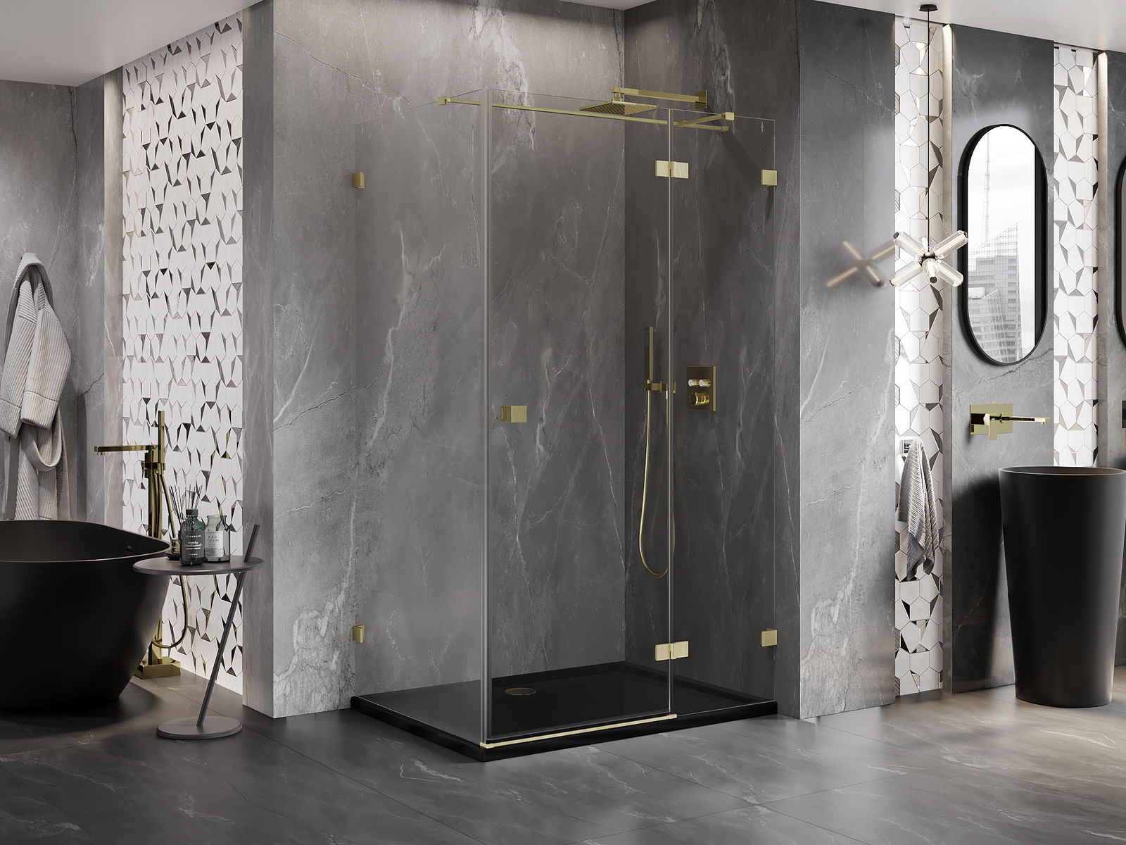 Klemmen en scharnieren zijn gemaakt van zeer duurzaam messing en vormen bovendien een effen glazen plaat. Het is een uitstekende keuze die elegantie, duurzaamheid en modern design combineert. Dankzij dergelijke oplossingen wordt de douche esthetischer en wordt het tegelijkertijd gemakkelijker om schoon te maken.