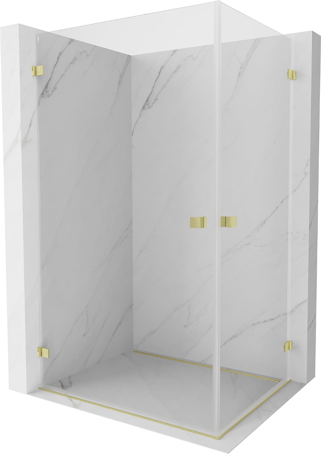 Mexen Lunar-B Duo scharnierende douchecabine 100 x 80 cm, transparant, geborsteld goud - 832-100L-080P-55-00