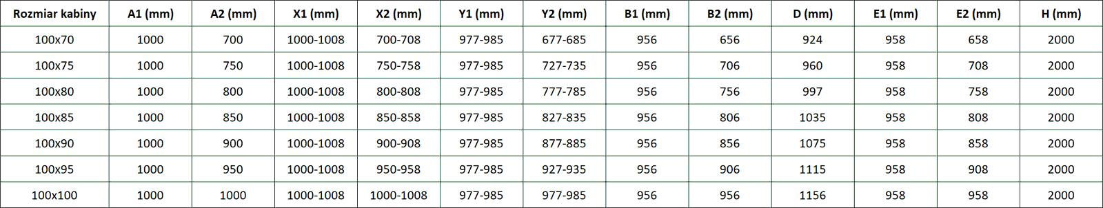 Draaideuren bieden maximale vrijheid tijdens het gebruik. Ze hebben stevige scharnieren gemaakt van duurzaam materiaal, die gemakkelijk schoon te houden zijn en gemakkelijke toegang tot het interieur van de cabine bieden.