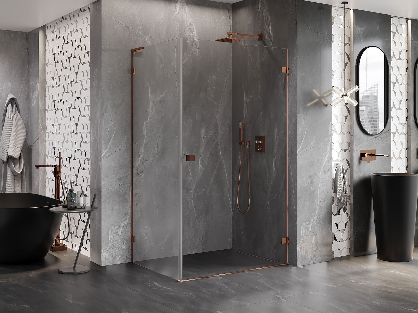De klemmen zijn gemaakt van zeer duurzaam messing en creëren een vlak glazen oppervlak. Het is een uitstekende keuze die elegantie, duurzaamheid en modern design combineert. Dankzij dergelijke oplossingen wint de douche aan esthetiek en tegelijkertijd vergemakkelijken ze het onderhoud van de netheid.