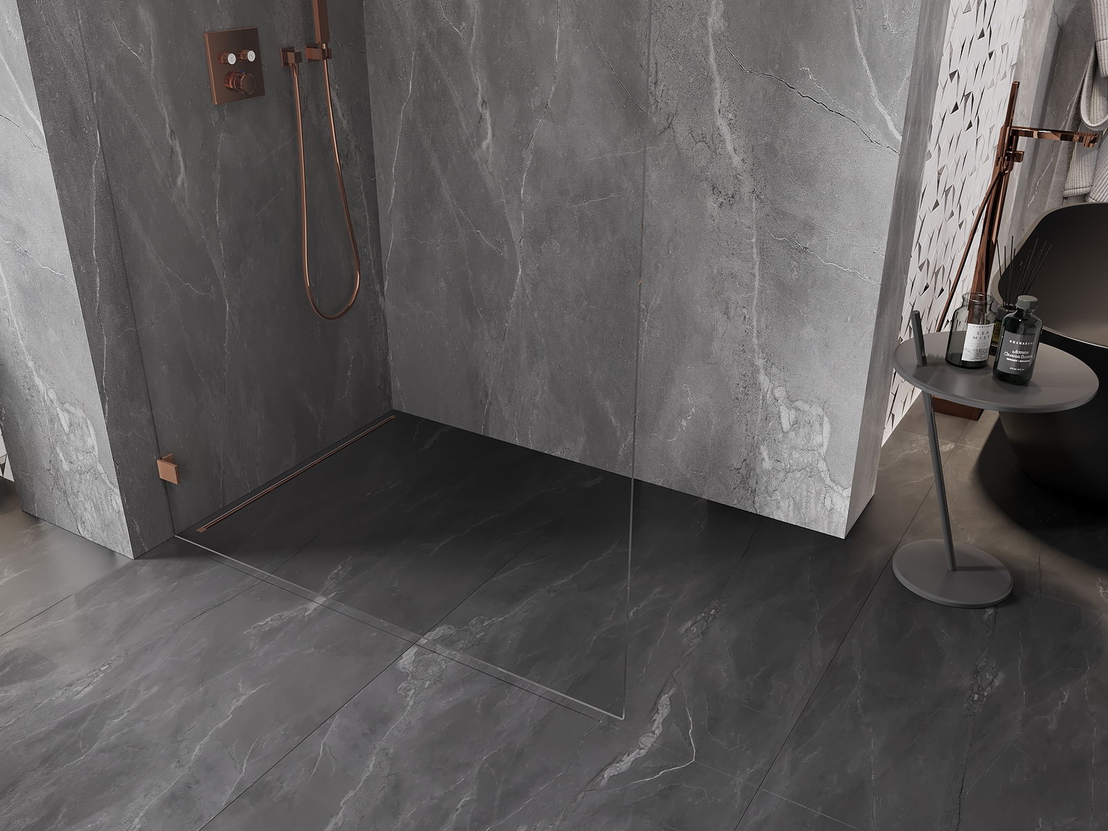 De klemmen zijn gemaakt van zeer duurzaam messing en creëren een vlak glazen oppervlak. Het is een uitstekende keuze die elegantie, duurzaamheid en modern design combineert. Dankzij dergelijke oplossingen wint de douche aan esthetiek en tegelijkertijd vergemakkelijken ze het onderhoud van de netheid.