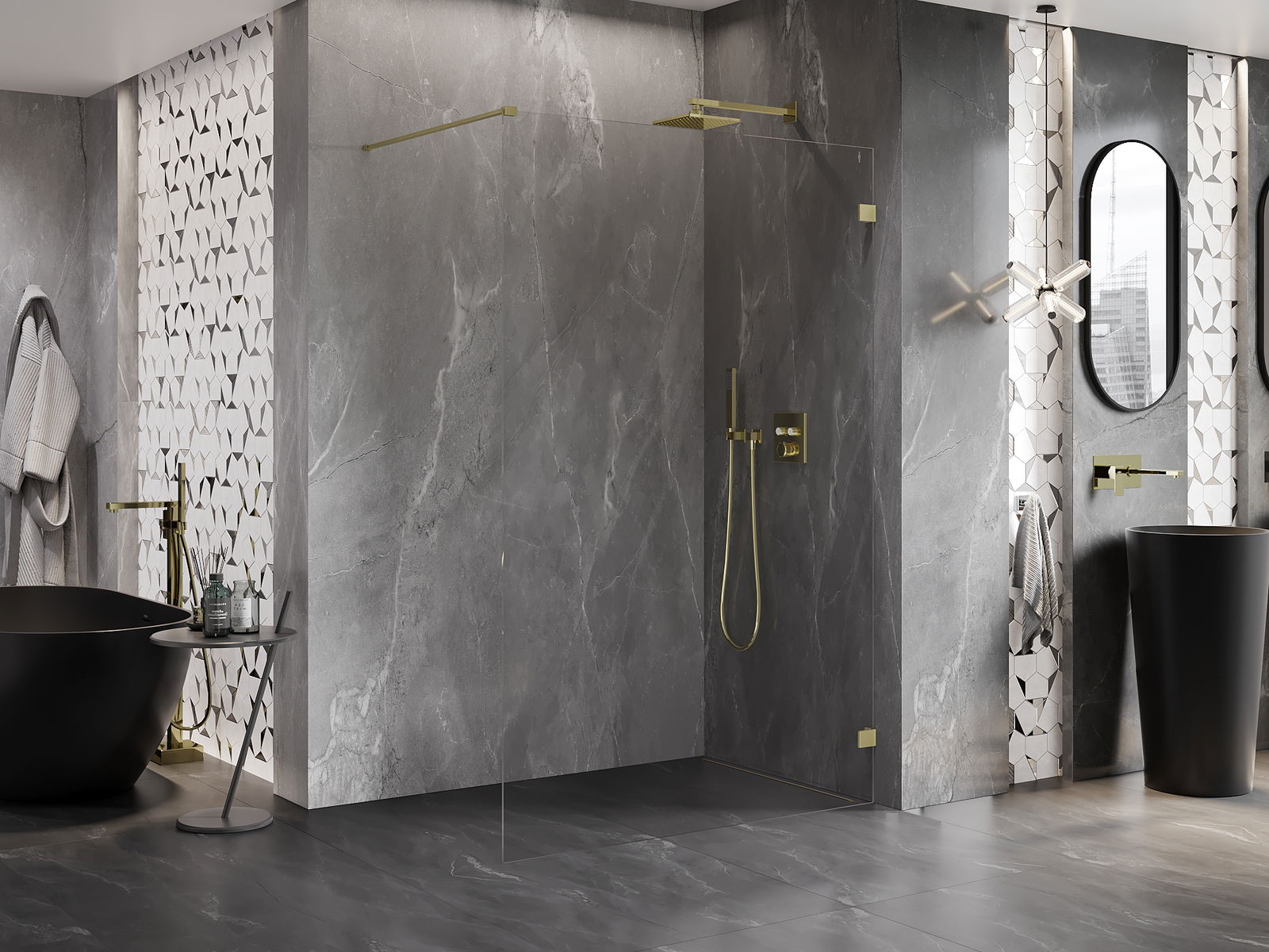 De klemmen zijn gemaakt van zeer duurzaam messing en creëren een vlak glazen oppervlak. Het is een uitstekende keuze die elegantie, duurzaamheid en modern design combineert. Dankzij dergelijke oplossingen wint de douche aan esthetiek en tegelijkertijd vergemakkelijken ze het onderhoud van de netheid.