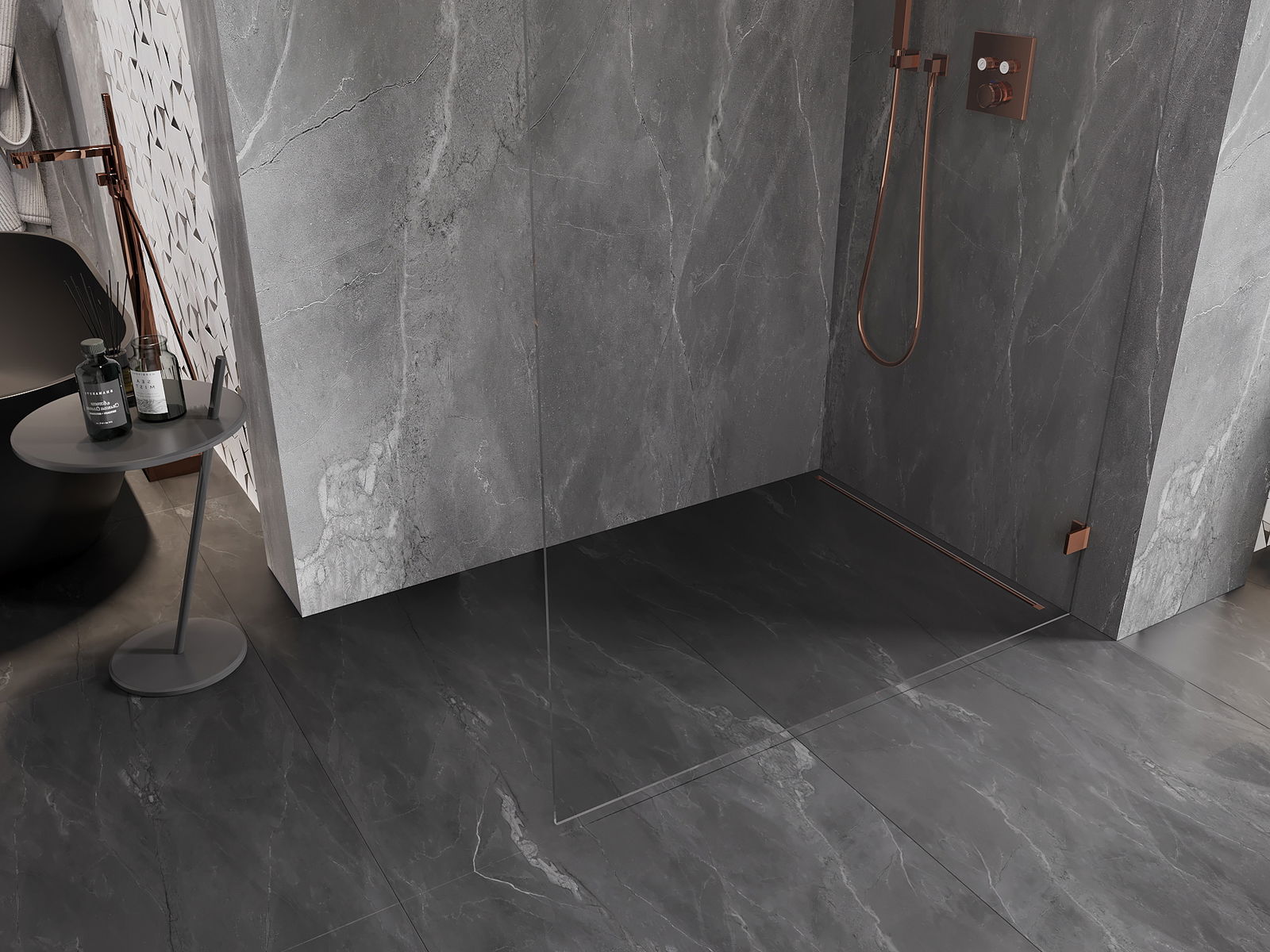 Mexen Lunar douchewand Walk-in rechts 70 x 200 cm, transparant 8 mm, roze goud - 830-070-000-60-00-P