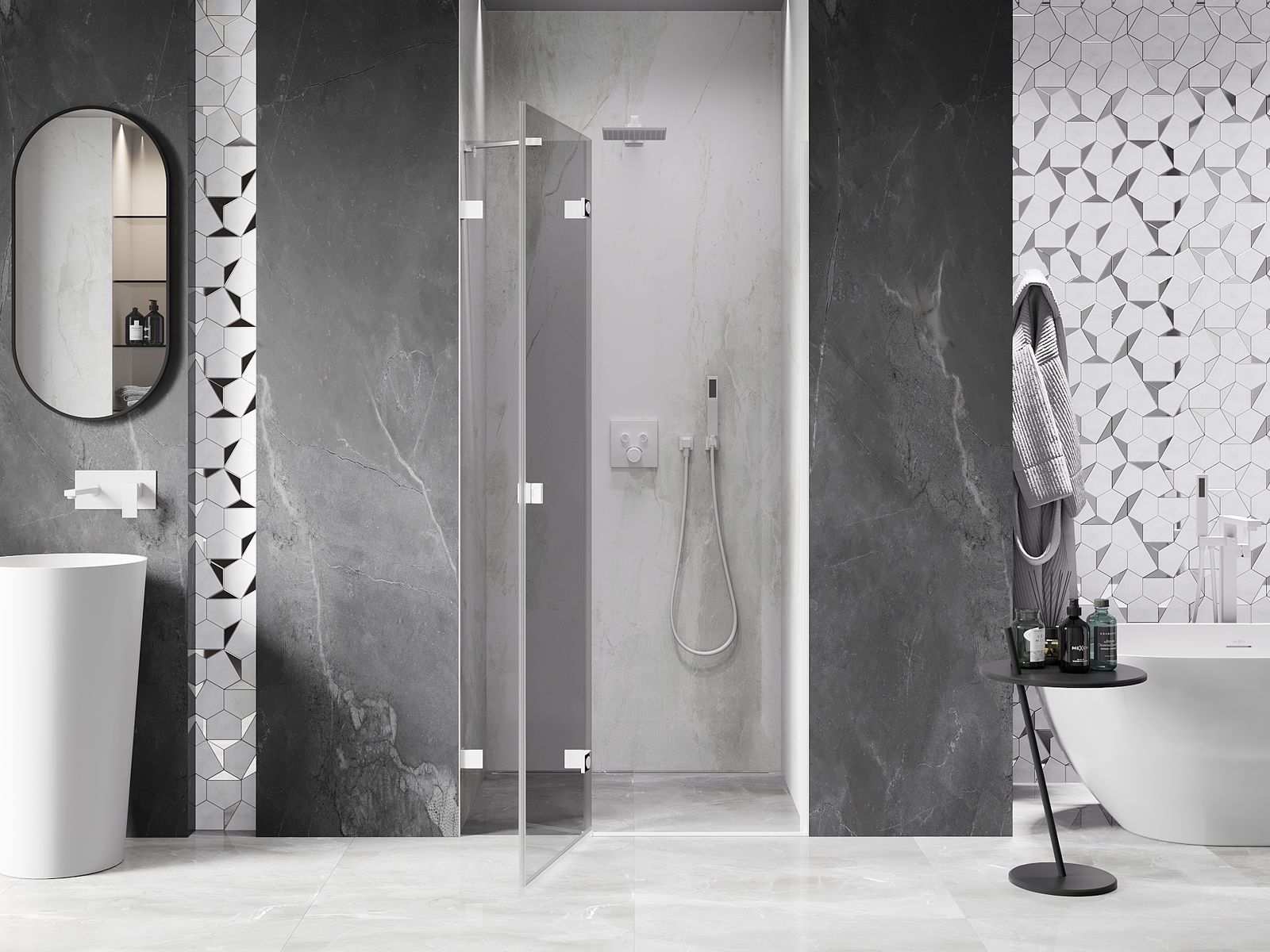 Klemmen en scharnieren zijn gemaakt van zeer duurzaam messing en vormen bovendien een effen glazen plaat. Het is een uitstekende keuze die elegantie, duurzaamheid en modern design combineert. Dankzij dergelijke oplossingen wordt de douche esthetischer en wordt het tegelijkertijd gemakkelijker om schoon te maken.