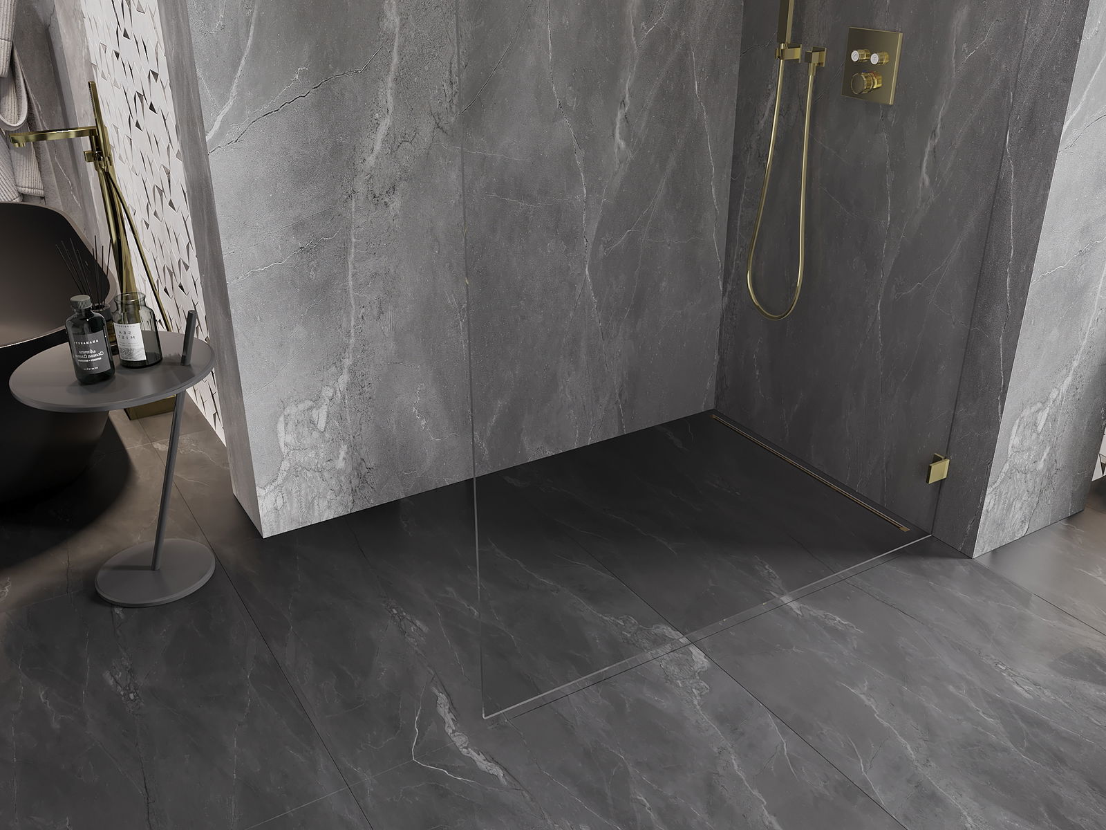 Mexen Lunar L douchewand Walk-in rechts 60 x 200 cm, transparant 8 mm, goud - 830L-060-000-50-00-P