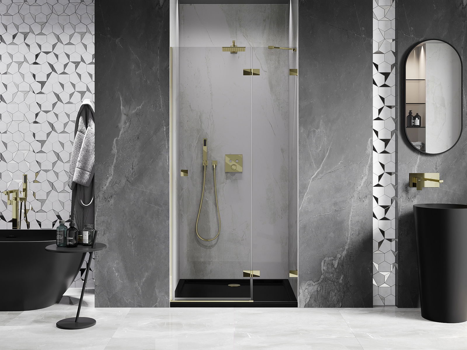 De beugels en scharnieren zijn gemaakt van zeer duurzaam messing en creëren een strak glazen oppervlak. Dit is een uitstekende keuze die elegantie, duurzaamheid en modern design combineert. Deze oplossingen verfraaien de esthetiek van uw douche en maken deze bovendien gemakkelijker schoon te houden.