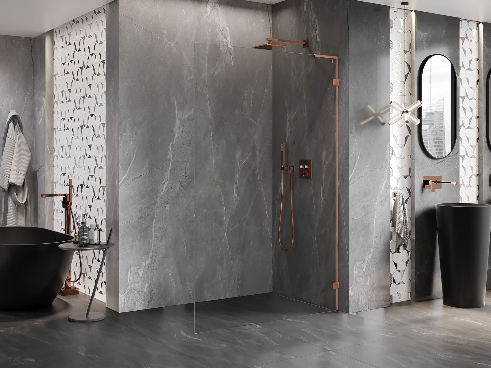 De klemmen zijn gemaakt van zeer duurzaam messing en creëren een vlak glazen oppervlak. Het is een uitstekende keuze die elegantie, duurzaamheid en modern design combineert. Dankzij dergelijke oplossingen wint de douche aan esthetiek en tegelijkertijd vergemakkelijken ze het onderhoud van de netheid.