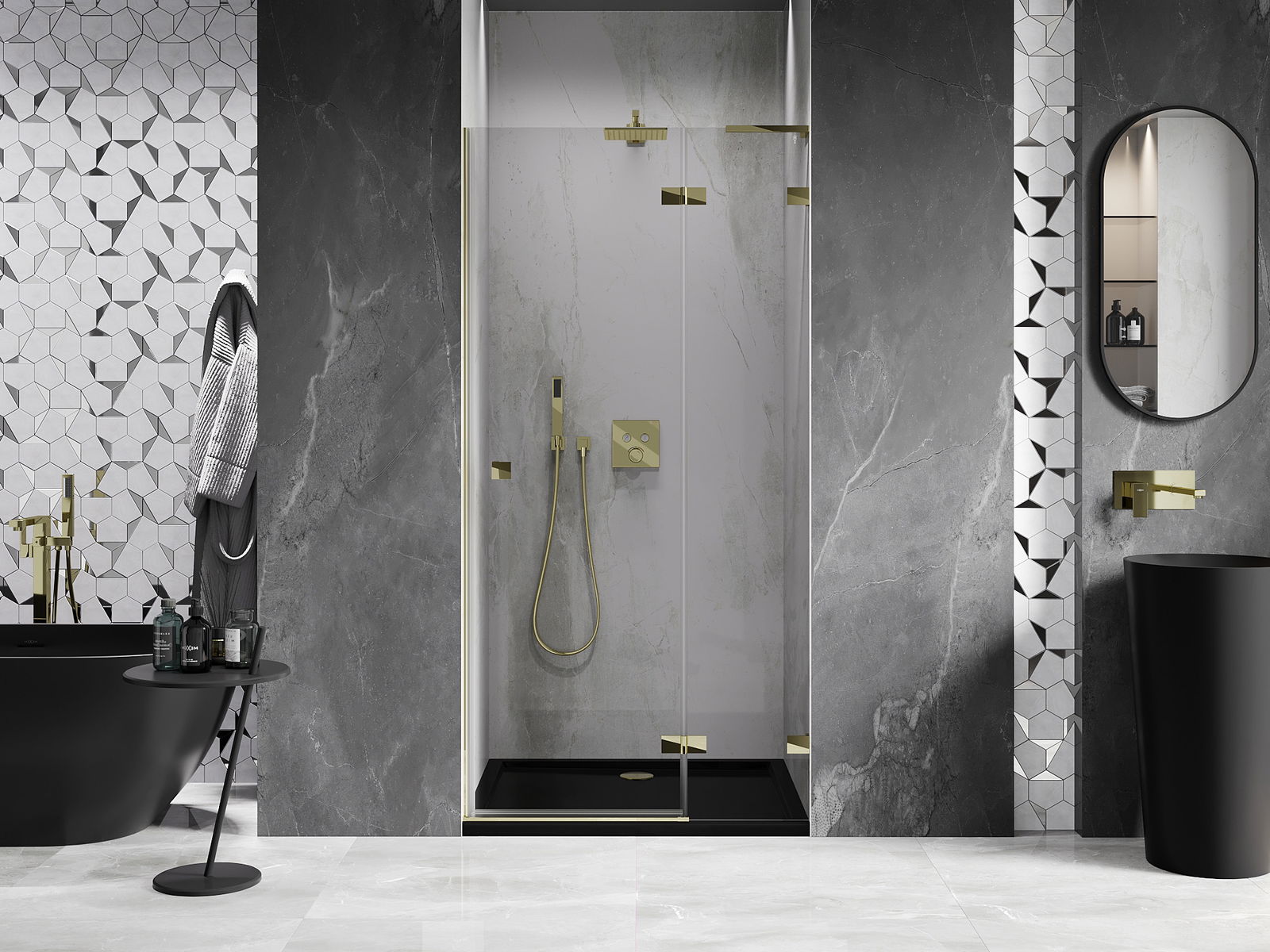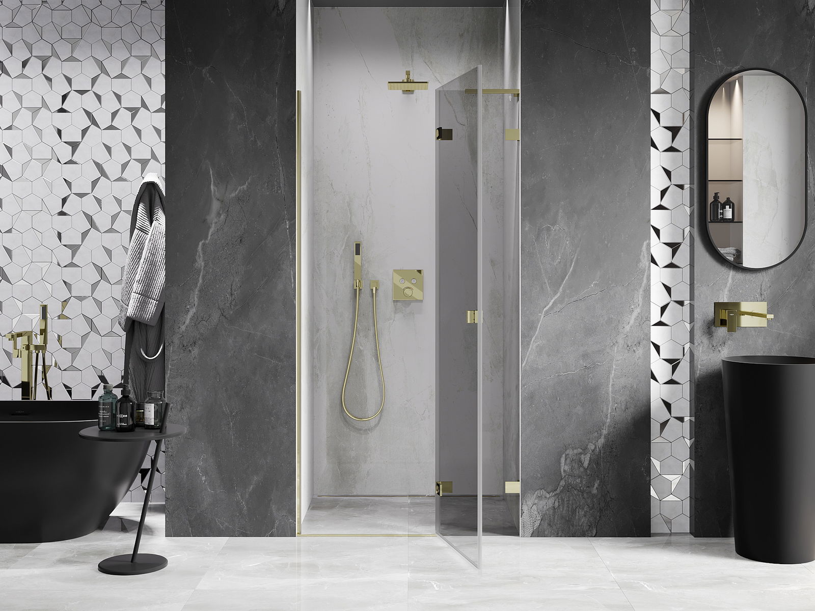 Draaideuren bieden maximale vrijheid tijdens het gebruik. Ze hebben stevige scharnieren gemaakt van duurzaam materiaal, die gemakkelijk schoon te houden zijn en gemakkelijke toegang tot het interieur van de cabine bieden.