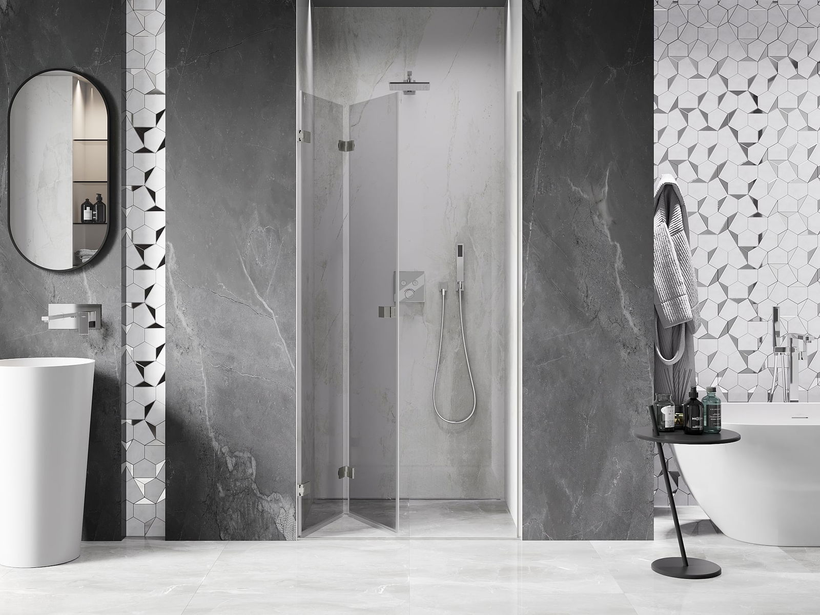 De mogelijkheid om deuren zowel naar buiten als naar binnen te vouwen, biedt meer ruimte wanneer de douche niet wordt gebruikt. Dit is de ideale oplossing voor kleinere badkamers, die de beschikbare ruimte maximaal benut.