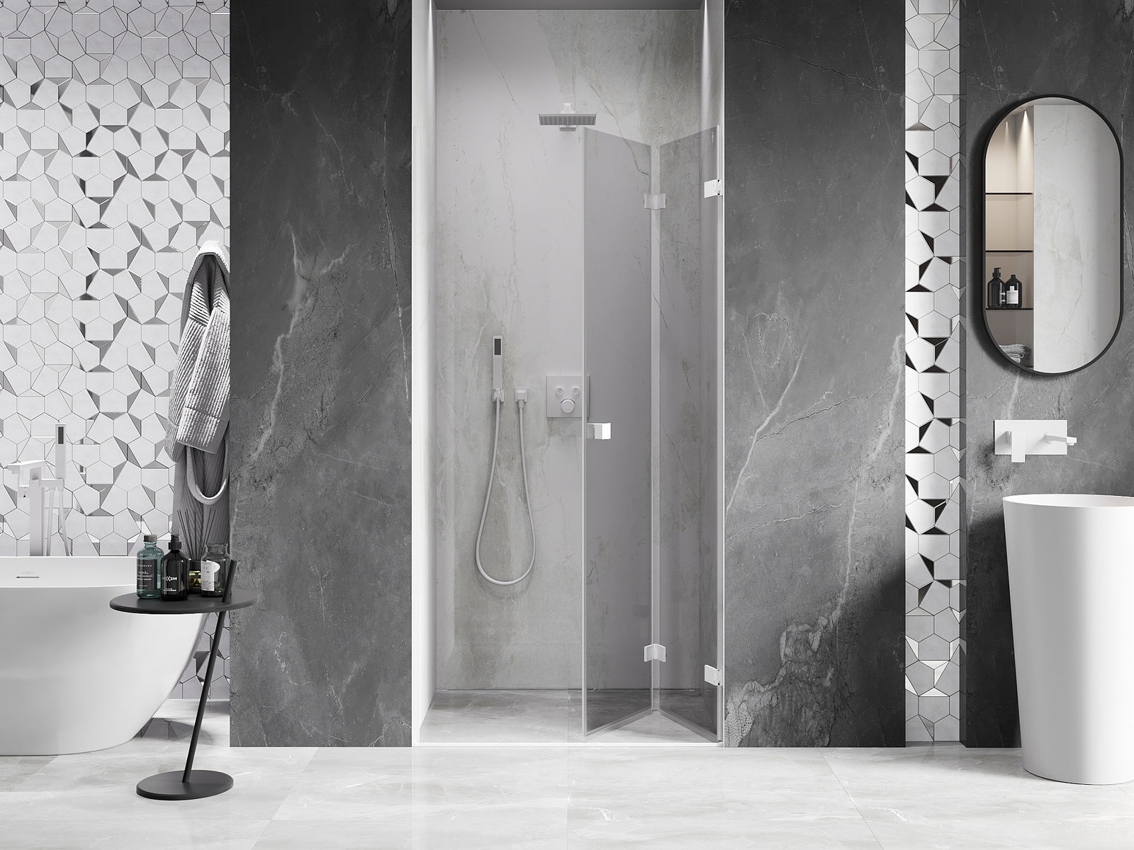 Mexen Lunar-F opklapbare douchedeur rechts 90 cm, transparant, wit - 836-090-000-20-00-P