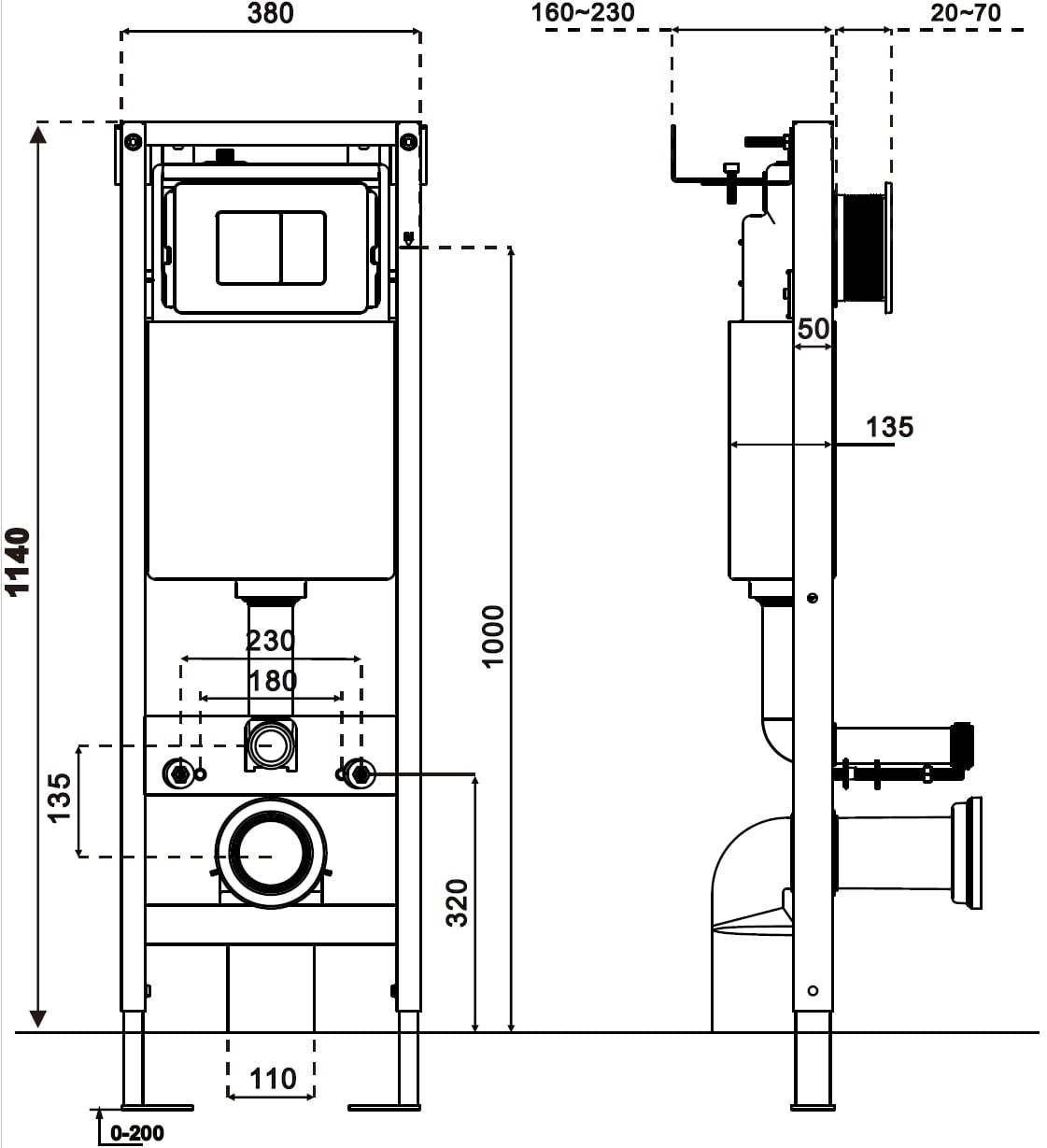 De mogelijkheid om de hoogte van het frame aan te passen zorgt voor een betere aanpassing aan verschillende technische omstandigheden in de badkamer. Het flexibele verstelbereik biedt gemak bij de montage en het bereiken van de optimale hoogte van het frame.