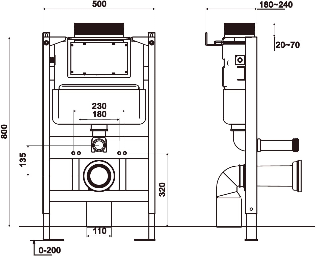 De mogelijkheid om de hoogte van het frame aan te passen zorgt voor een betere aanpassing aan verschillende technische omstandigheden in de badkamer. Het flexibele verstelbereik biedt gemak bij de montage en het bereiken van de optimale hoogte van het frame.