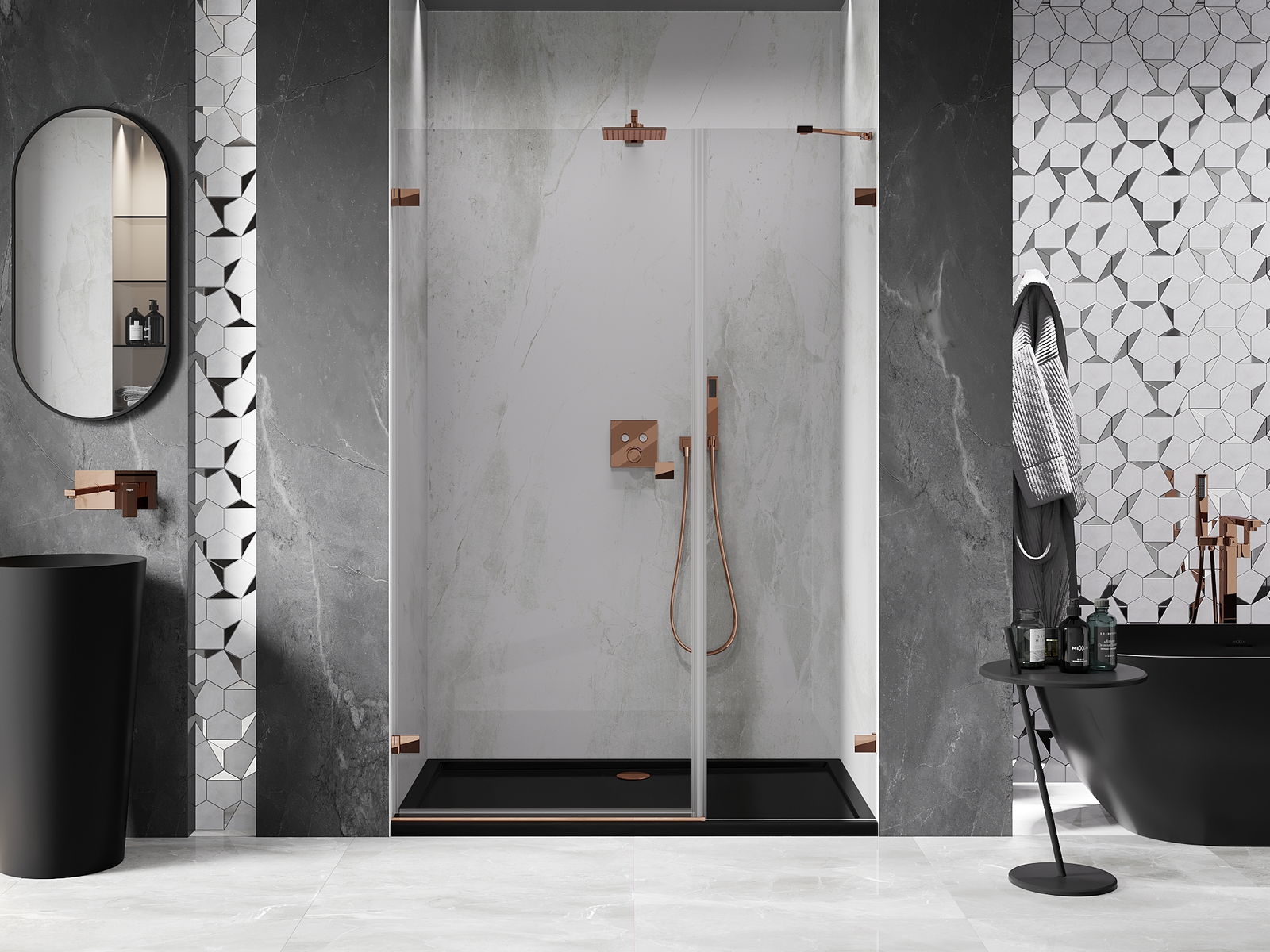 Draaideuren bieden maximale vrijheid tijdens het gebruik. Ze hebben stevige scharnieren gemaakt van duurzaam materiaal, die gemakkelijk schoon te houden zijn en gemakkelijke toegang tot het interieur van de cabine bieden.