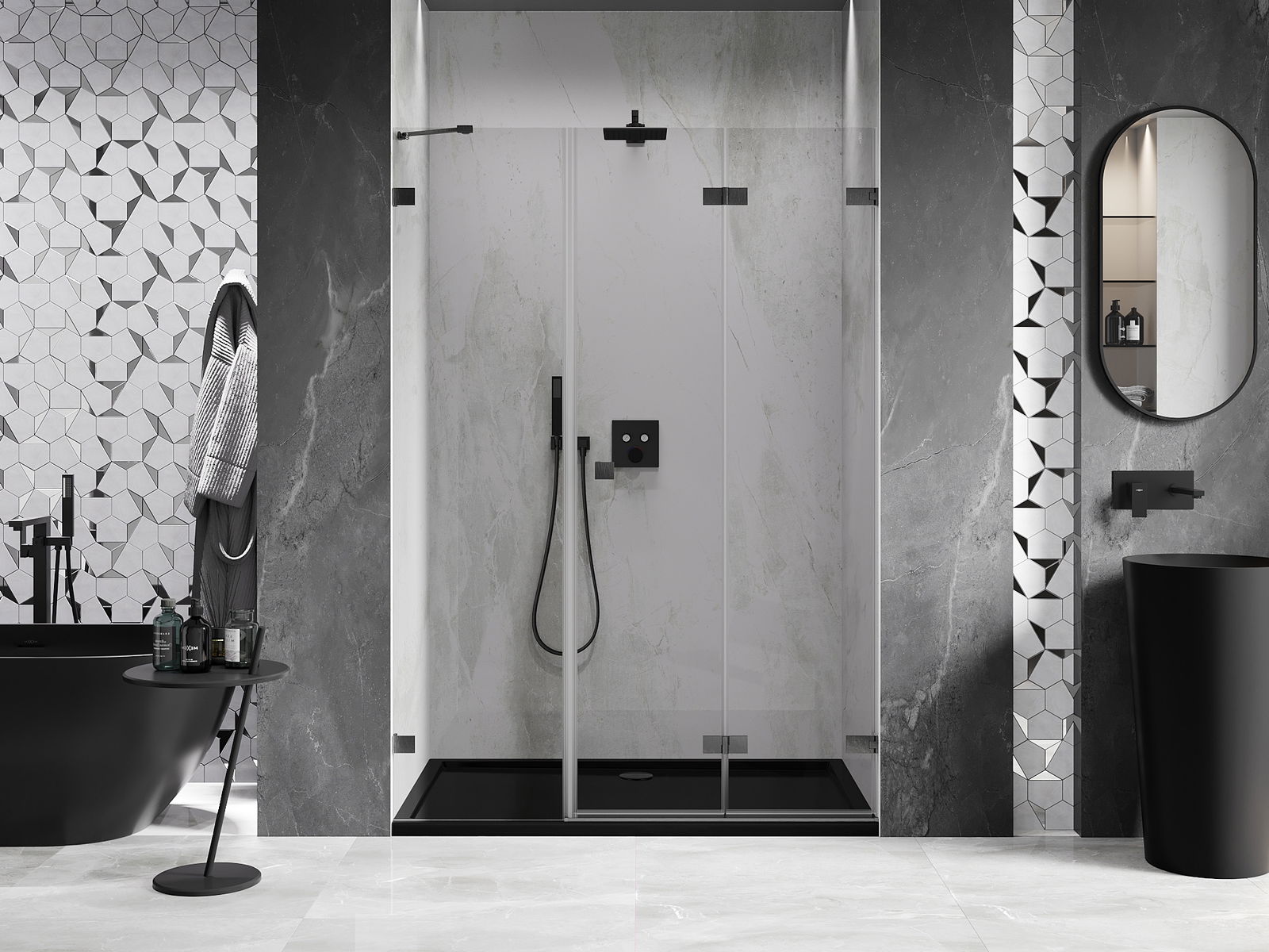 De mogelijkheid om deuren zowel naar buiten als naar binnen te vouwen, biedt meer ruimte wanneer de douche niet wordt gebruikt. Dit is de ideale oplossing voor kleinere badkamers, die de beschikbare ruimte maximaal benut.