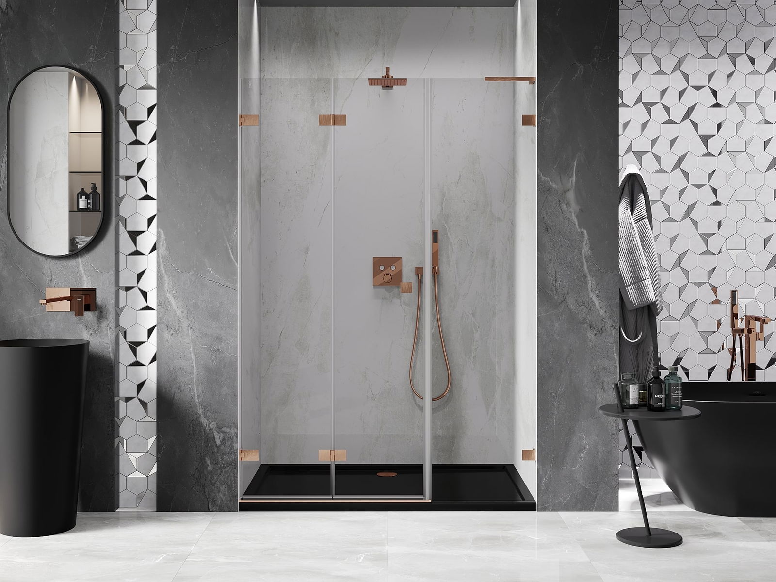 Mexen Lunar-F L opvouwbare douchedeur links 150 cm, transparant, geborsteld koper - 836SL-150-050-65-00-L