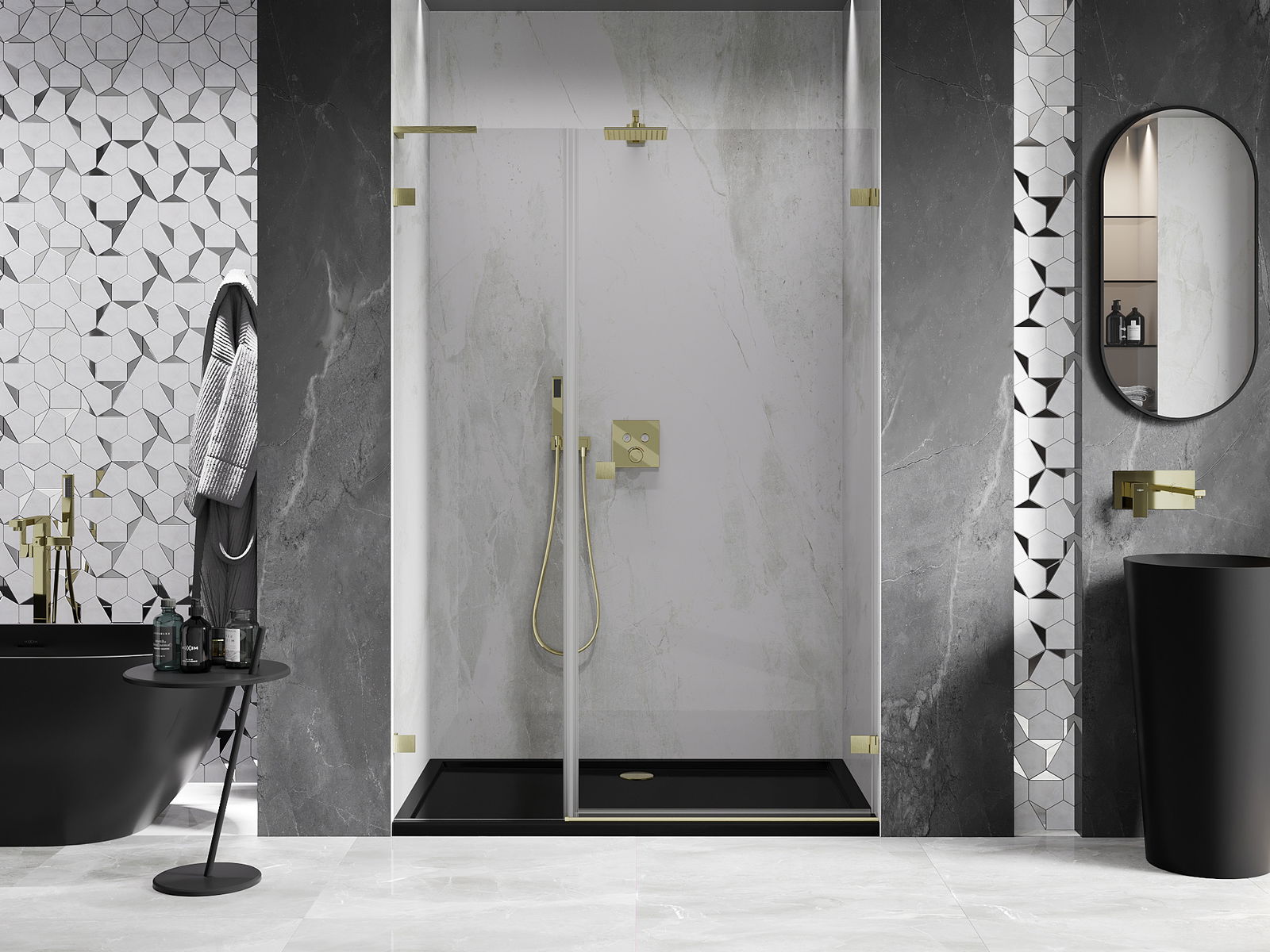De beugels zijn gemaakt van zeer duurzaam messing en creëren een strak glazen oppervlak. Dit is een uitstekende keuze die elegantie, duurzaamheid en modern design combineert. Deze oplossingen verfraaien uw douche en maken deze bovendien gemakkelijker schoon te houden.