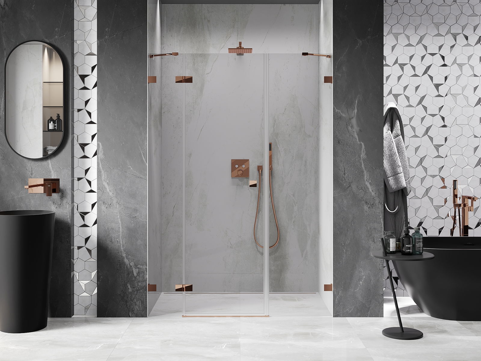 De handige en comfortabele handgreep is gemaakt van duurzaam en stevig metaal. De modieuze vorm, gecombineerd met een afwerking die qua kleur aansluit bij de profielen, geeft het geheel een moderne en stijlvolle uitstraling en versterkt de esthetiek van elke badkamer.