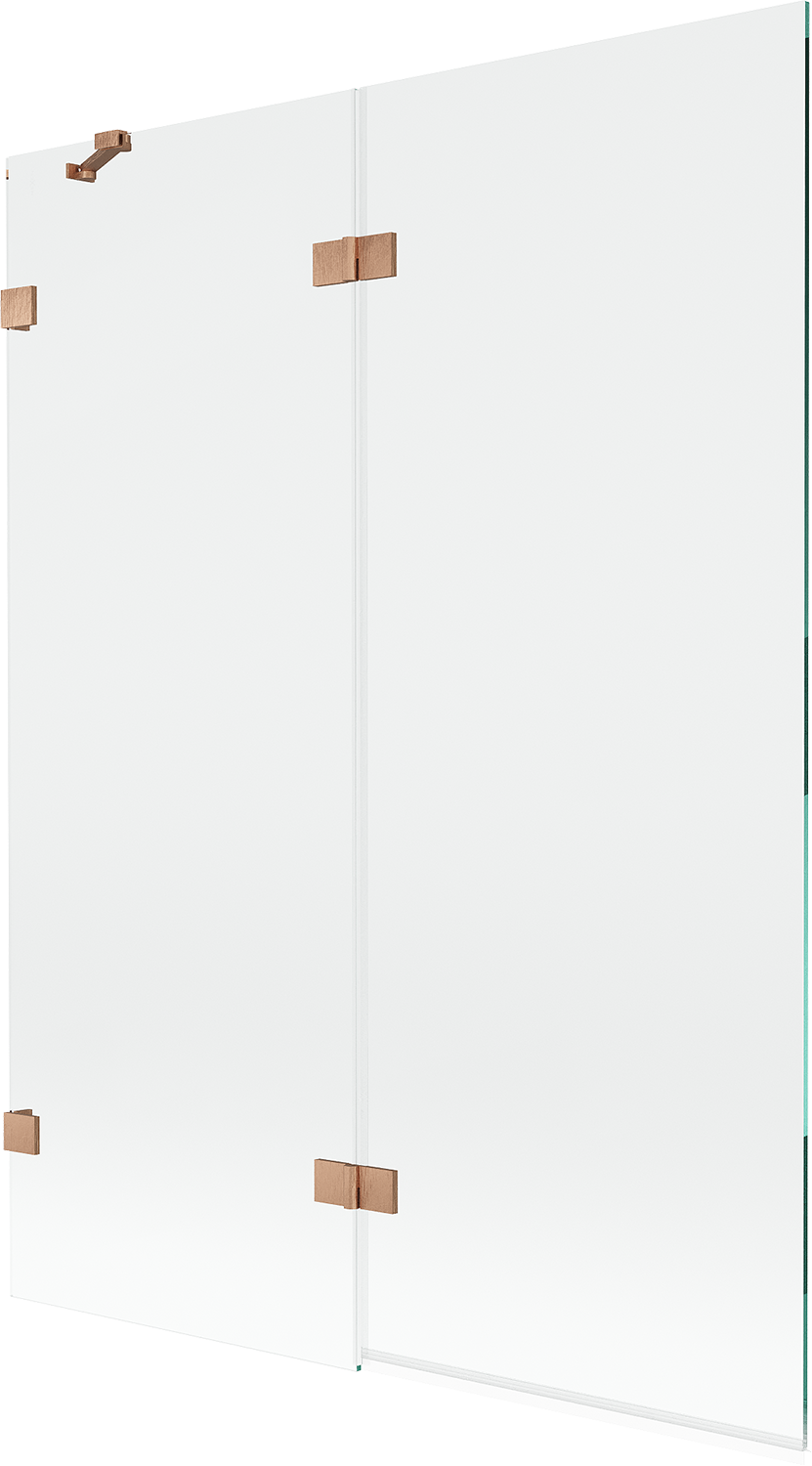 Mexen Lunar badscherm 2-delig links 130 x 150 cm, transparant, geborsteld koper - 897-130-100-65-00-L