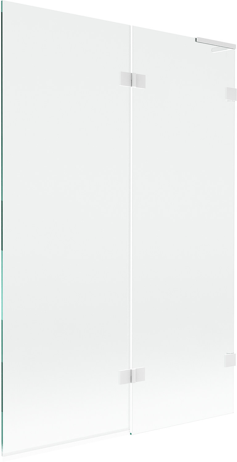 Scherm gemaakt van twee vleugels met de mogelijkheid om het op te vouwen. Deze oplossing bespaart meer ruimte in de badkamer en maakt het gemakkelijk om de overgebleven ruimte te gebruiken wanneer we de badzone niet gebruiken.