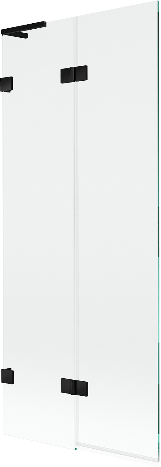 Scherm gemaakt van twee vleugels met de mogelijkheid om het op te vouwen. Deze oplossing bespaart meer ruimte in de badkamer en maakt het gemakkelijk om de overgebleven ruimte te gebruiken wanneer we de badzone niet gebruiken.