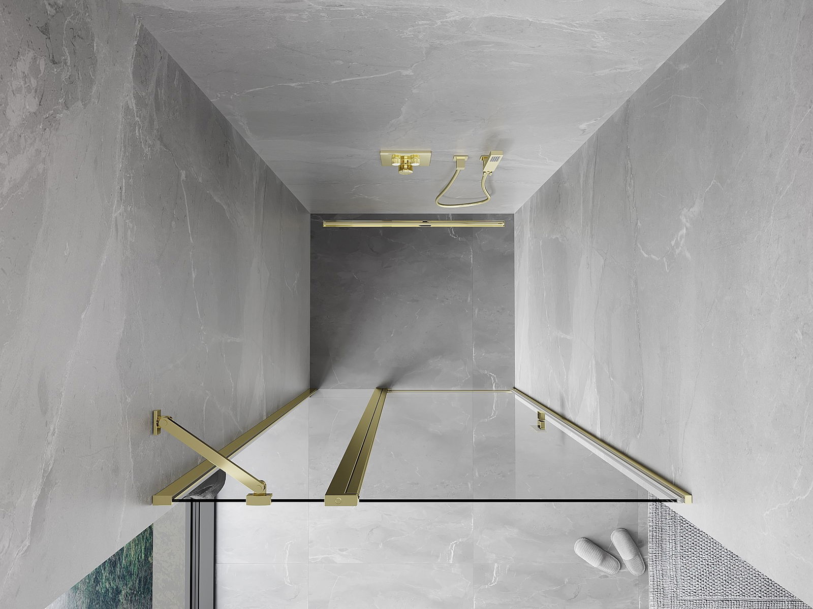 Mexen Mist douchedeur scharnierend 70 cm, transparant, goud - 8A4-070-000-50-00