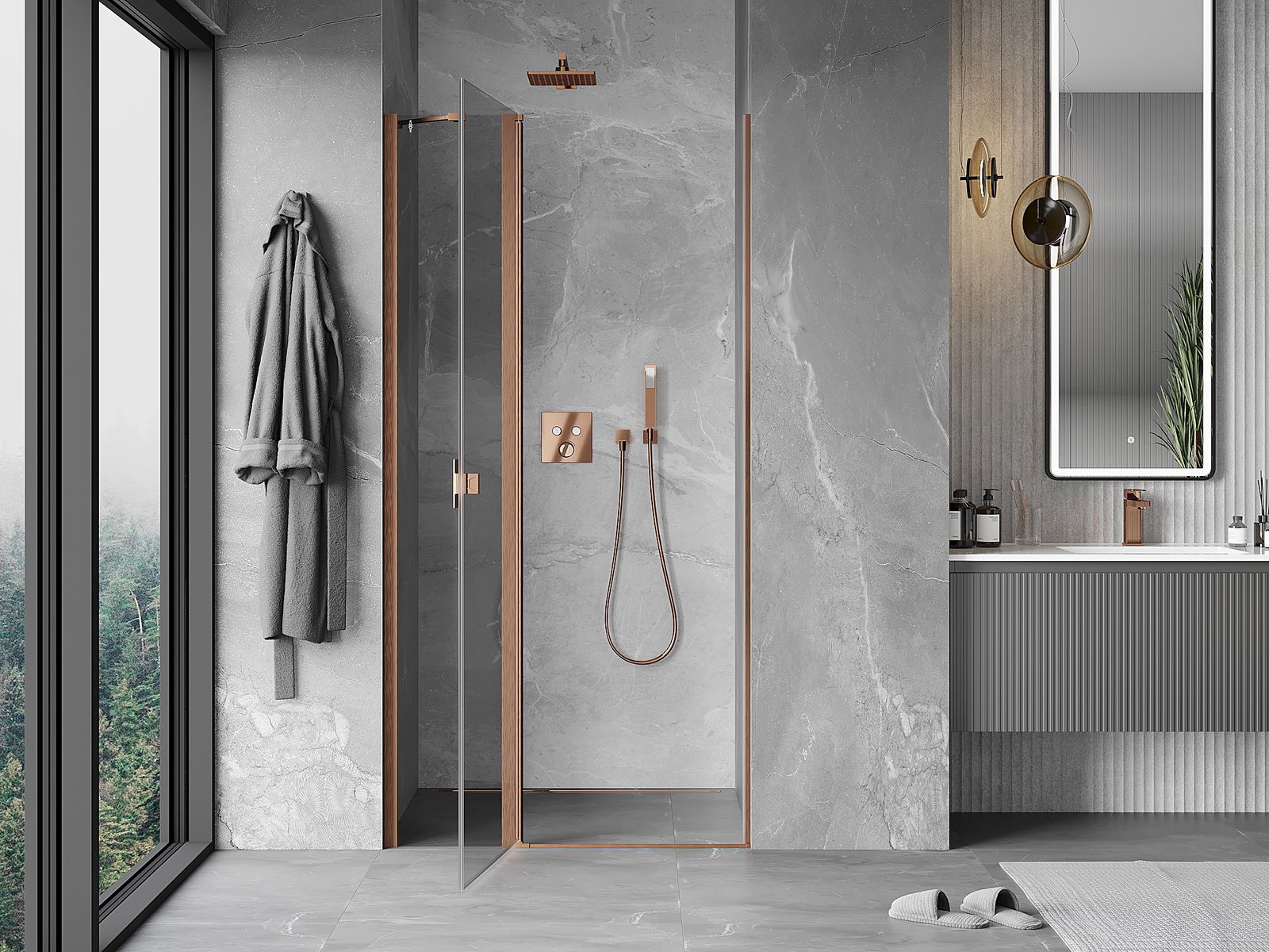 Draaideuren bieden maximale vrijheid tijdens het gebruik. Ze hebben stevige scharnieren gemaakt van duurzaam materiaal, die gemakkelijk schoon te houden zijn en gemakkelijke toegang tot het interieur van de cabine bieden.