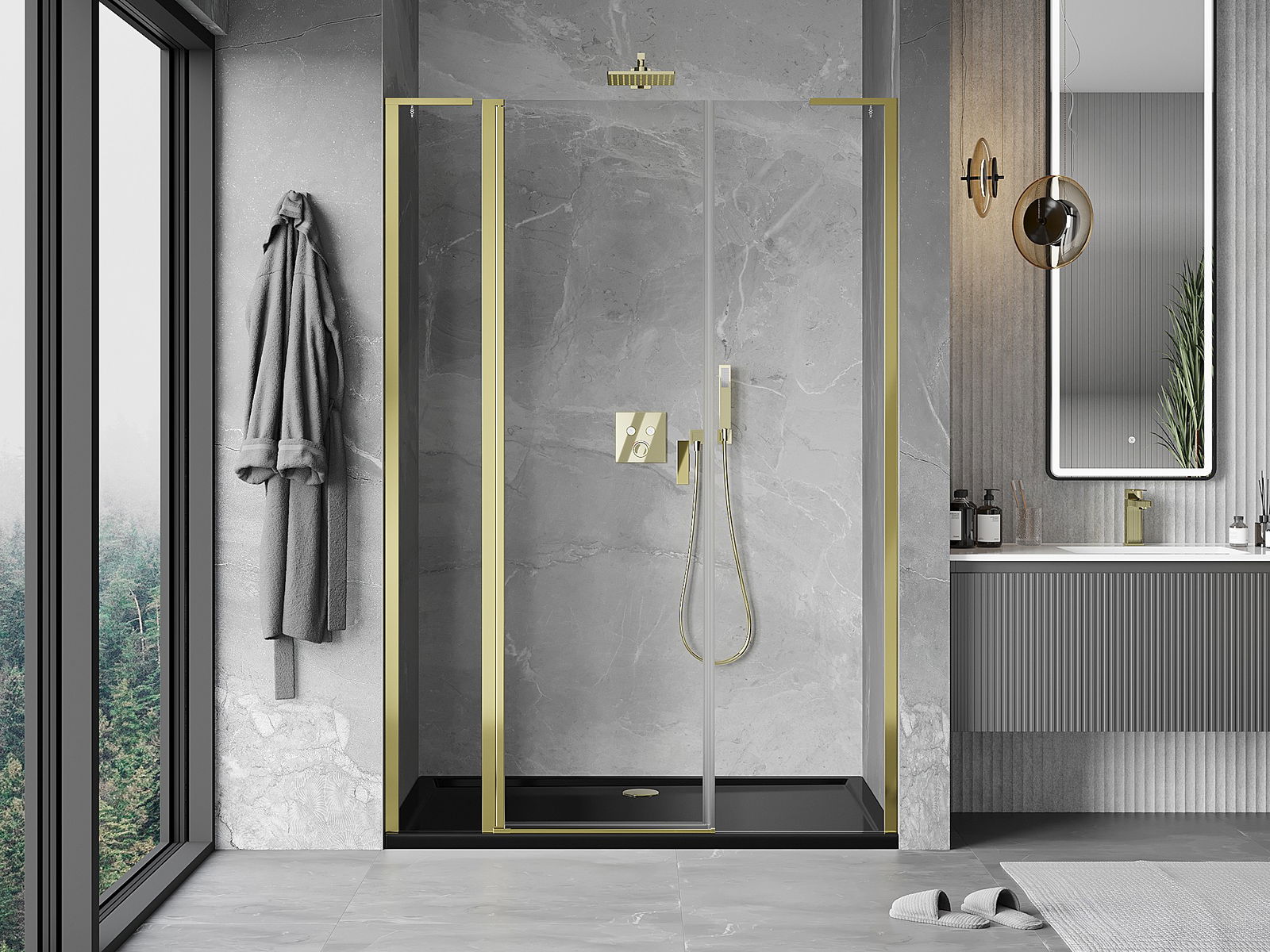 Draaideuren bieden maximale vrijheid tijdens het gebruik. Ze hebben stevige scharnieren gemaakt van duurzaam materiaal, die gemakkelijk schoon te houden zijn en gemakkelijke toegang tot het interieur van de cabine bieden.