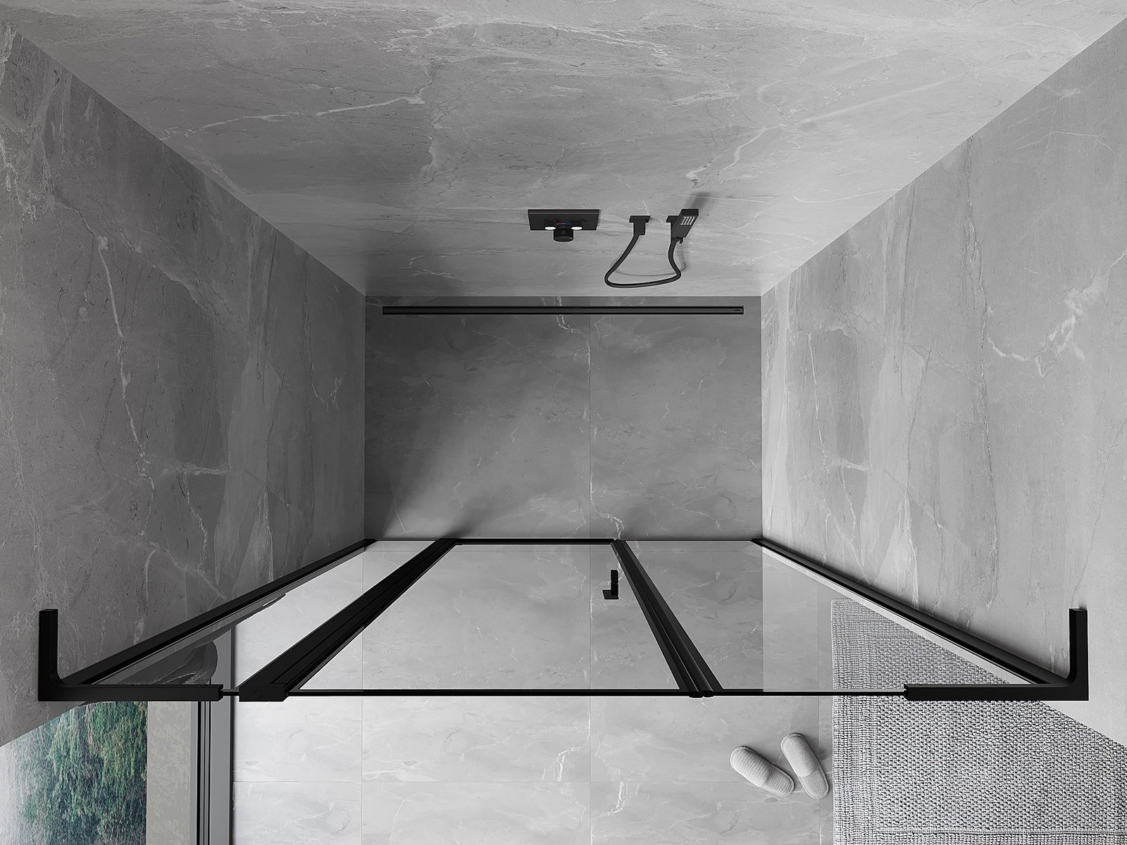 Mexen Mist L douchedeur scharnierend links 145 cm, zwarte omlijsting, zwart - 8A4L-145-001-70-70-L