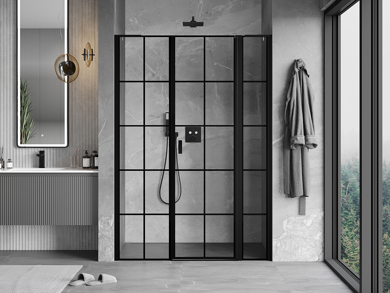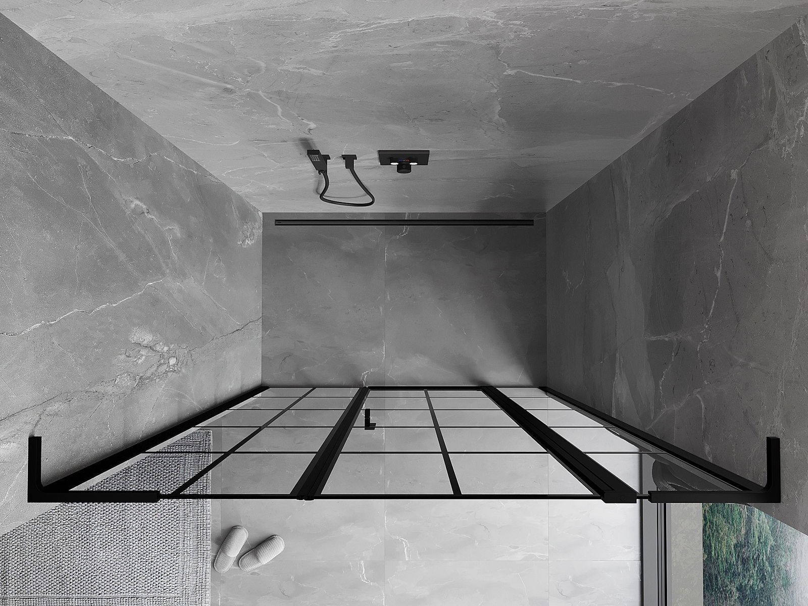 Mexen Mist L douchedeur, standaard openend, rechts, 135 cm, zwart raster, zwart - 8A4L-135-001-70-77-P