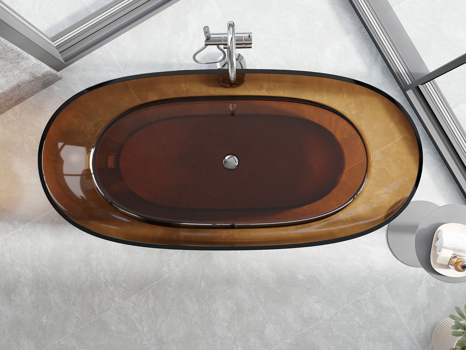 Het is een modern materiaal dat een elegante uitstraling combineert met hoge duurzaamheid. Het is bestand tegen mechanische beschadigingen, gemakkelijk schoon te maken en aangenaam om aan te raken. De transparante vorm en de dunne rand van het bad geven het een gevoel van lichtheid en een uniek karakter, waardoor het een opvallend accent vormt in de badkamerinrichting.