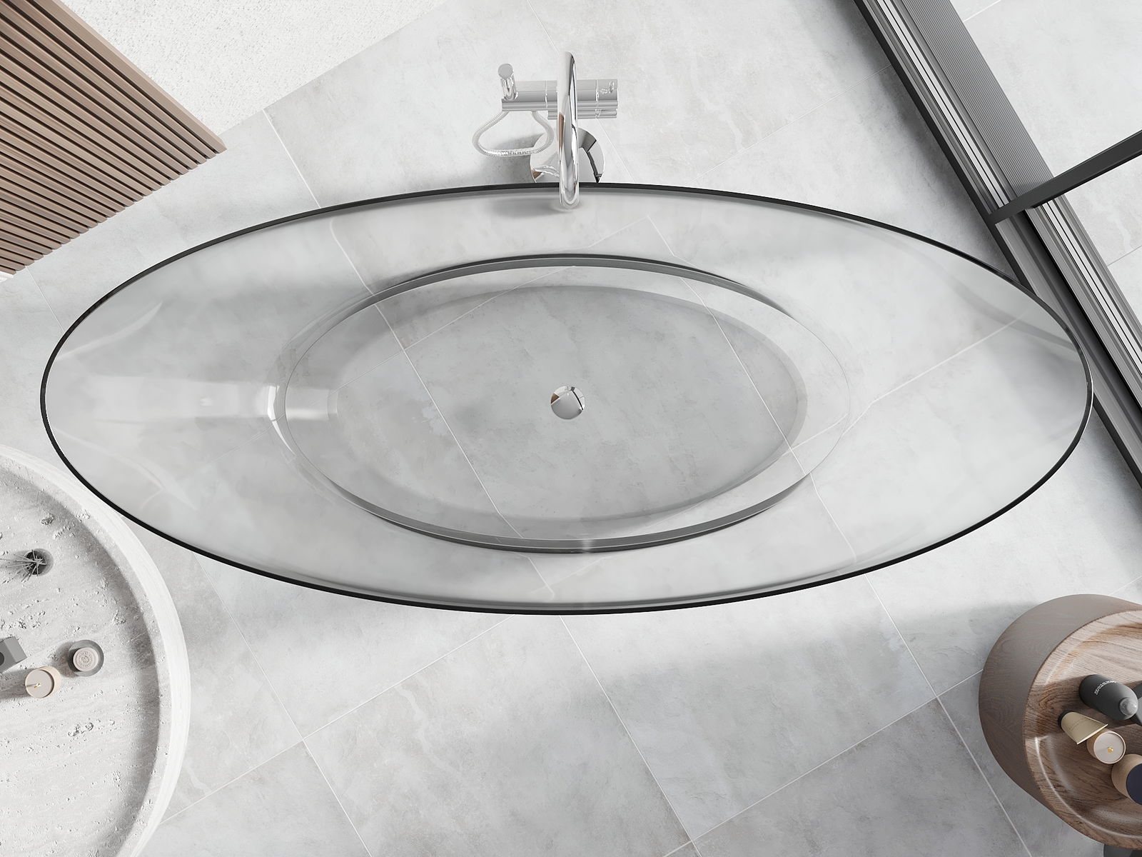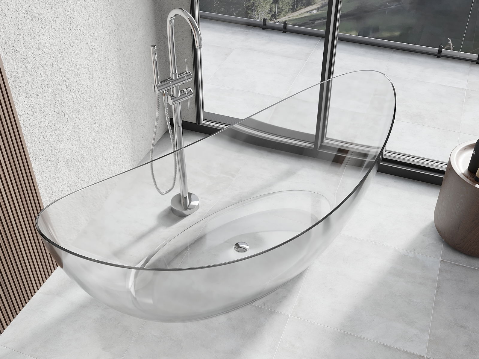 Het is een modern materiaal dat een elegante uitstraling combineert met hoge duurzaamheid. Het is bestand tegen mechanische beschadigingen, gemakkelijk schoon te maken en aangenaam om aan te raken. De transparante vorm en de dunne rand van het bad geven het een gevoel van lichtheid en een uniek karakter, waardoor het een opvallend accent vormt in de badkamerinrichting.