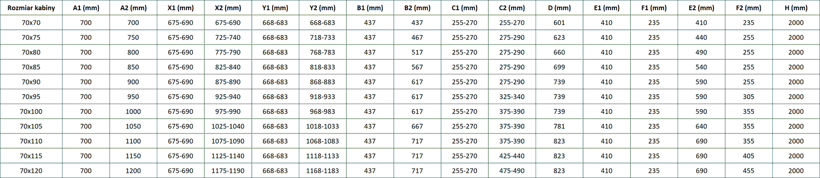 Draaideuren bieden maximale vrijheid tijdens het gebruik. Ze hebben stevige scharnieren gemaakt van duurzaam materiaal, die gemakkelijk schoon te houden zijn en gemakkelijke toegang tot het interieur van de cabine bieden.