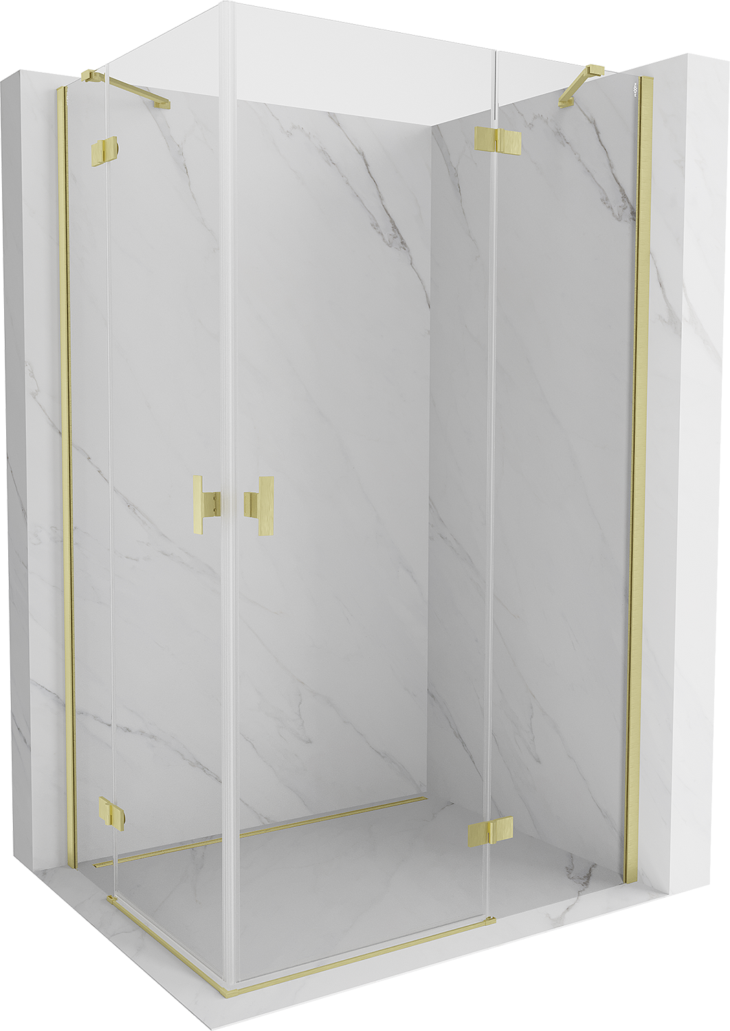Mexen Mist-H Duo scharnierende douchecabine rechts 70 x 90 cm, transparant, geborsteld goud - 8A5-070L-090P-55-00