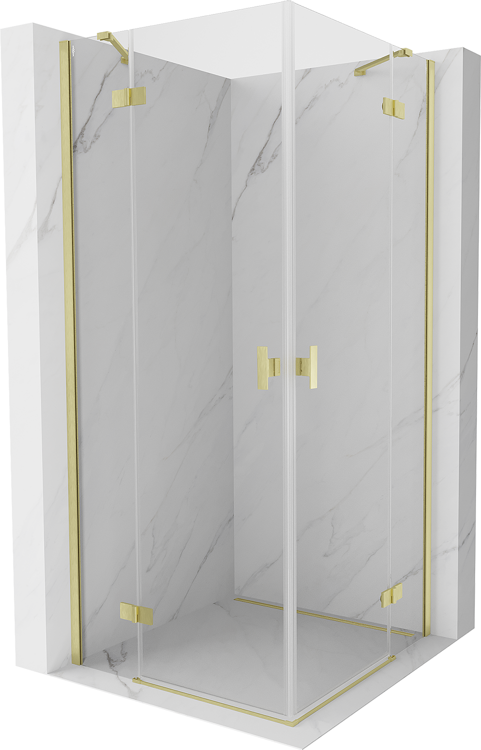 Mexen Mist-H Duo douchecabine scharnierend 100 x 100 cm, transparant, geborsteld goud - 8A5-100L-100P-55-00
