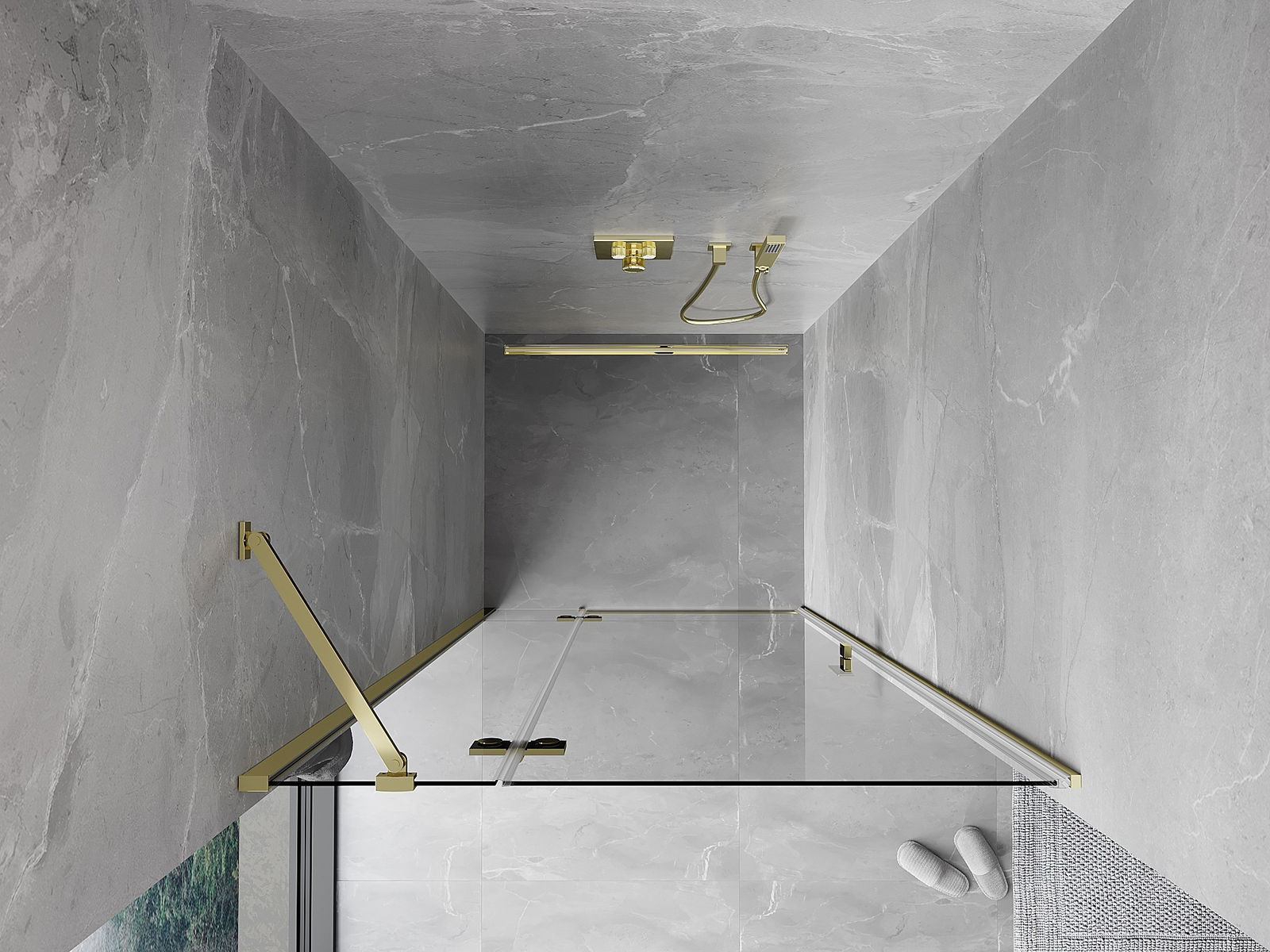Mexen Mist-H douchedeur scharnierend links 115 cm, transparant, goud - 8A5-115-000-50-00-L